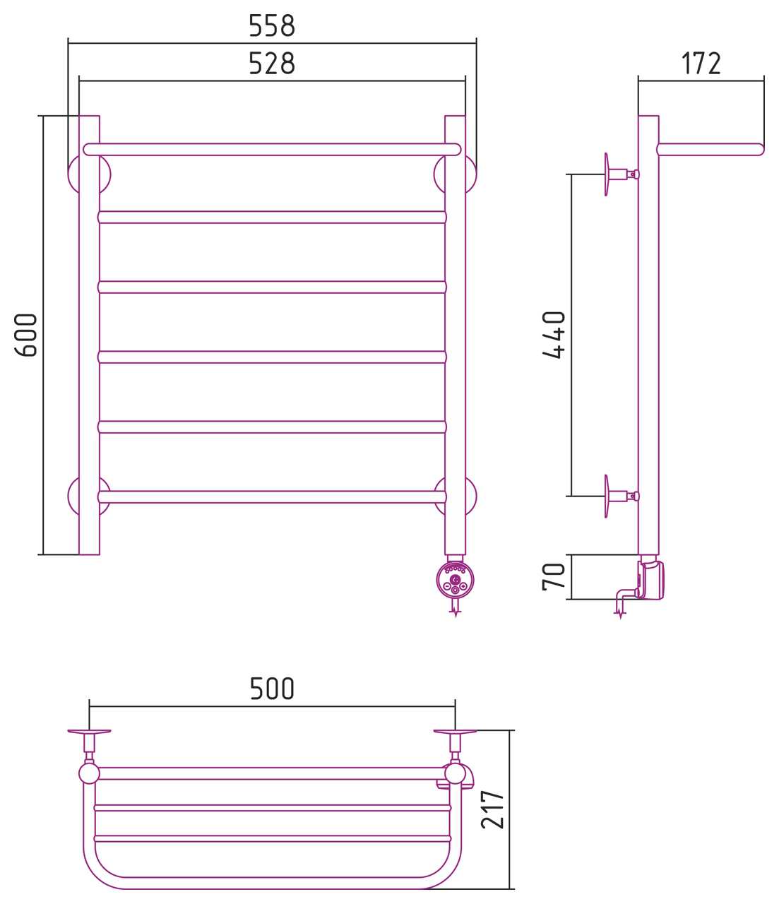 Полотенцесушитель электрический Стилье Формат 20 ТП 600x500 (Полка + 5) П16, хром (00520-6050)