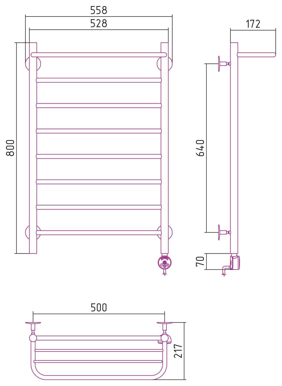 Полотенцесушитель электрический Стилье Формат 20 ТП 800x500 (Полка + 7) П16, хром (00520-8050)