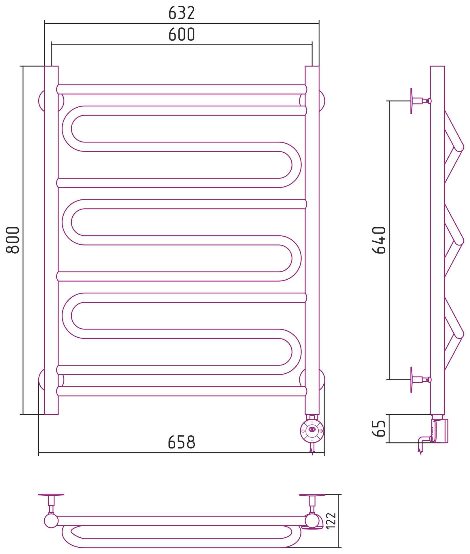 Полотенцесушитель электрический Стилье Формат 22 800x600 правый, хром (00522-8060)
