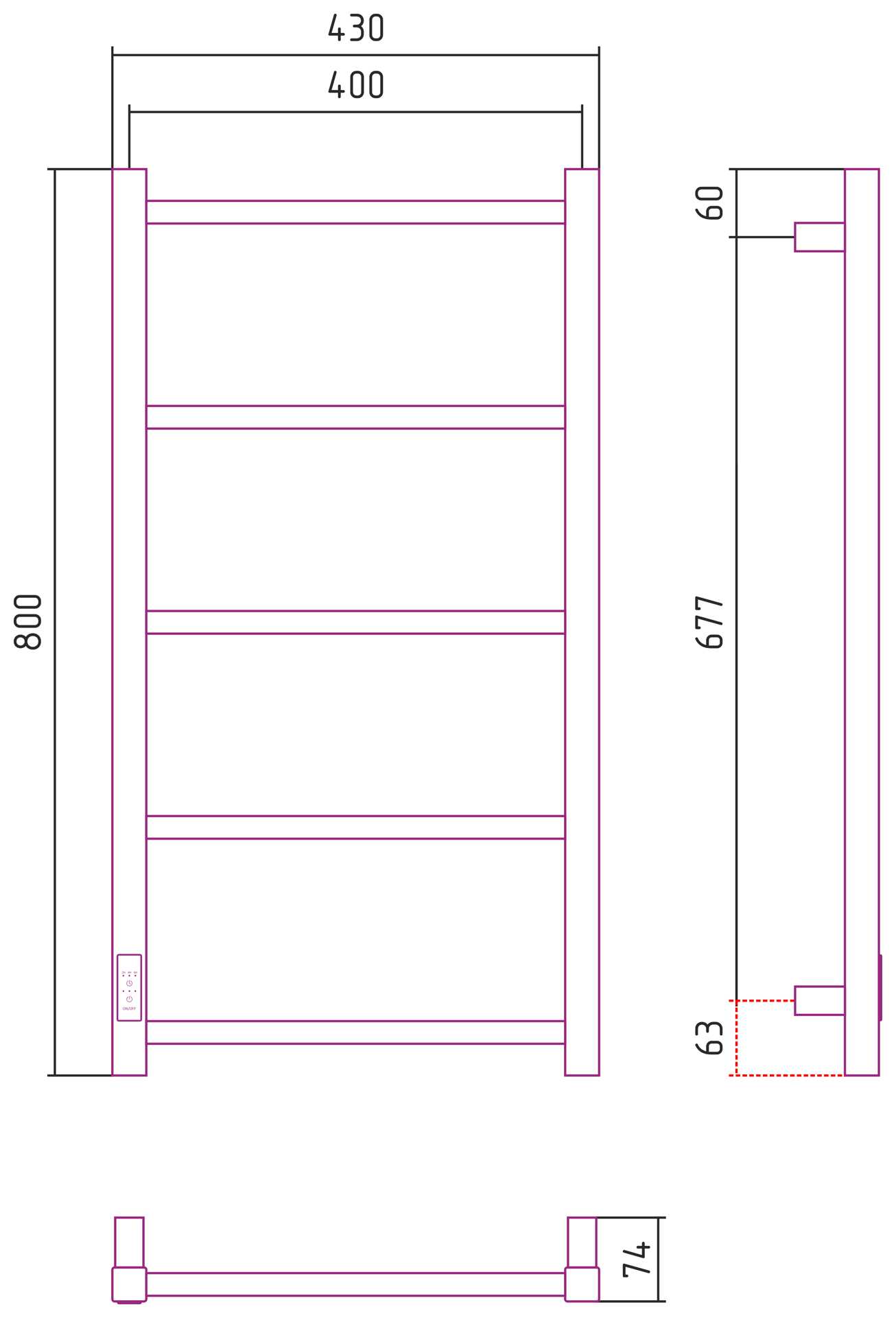 Полотенцесушитель электрический Стилье Формат 26 800x400 левый, черный (17527-8040)
