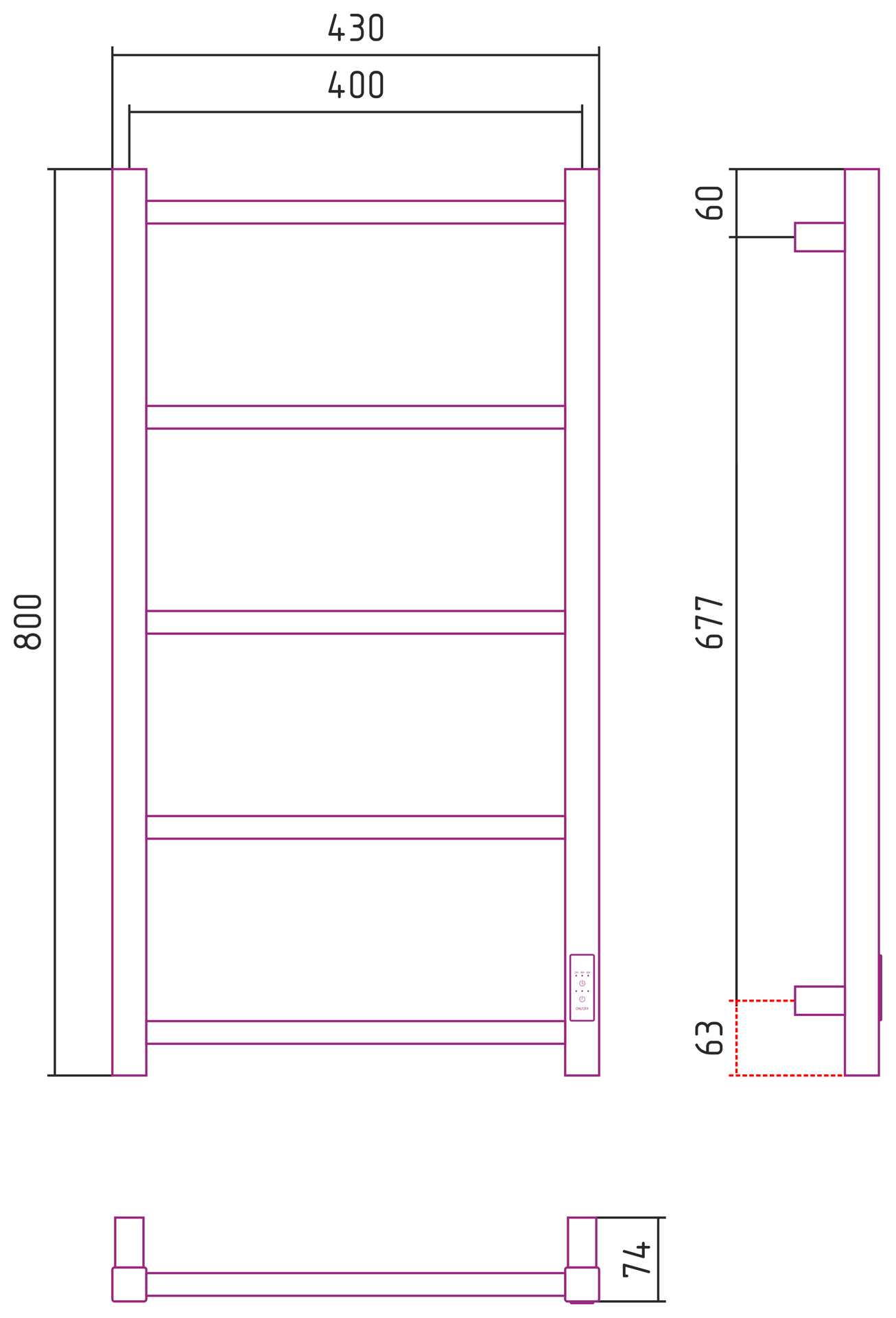 Полотенцесушитель электрический Стилье Формат 26 800x400 правый, черный (17526-8040)
