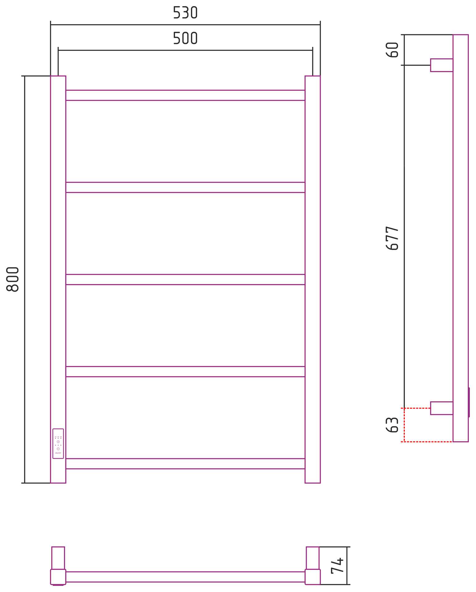 Полотенцесушитель электрический Стилье Формат 26 800x500 левый, белый (12527-8050)