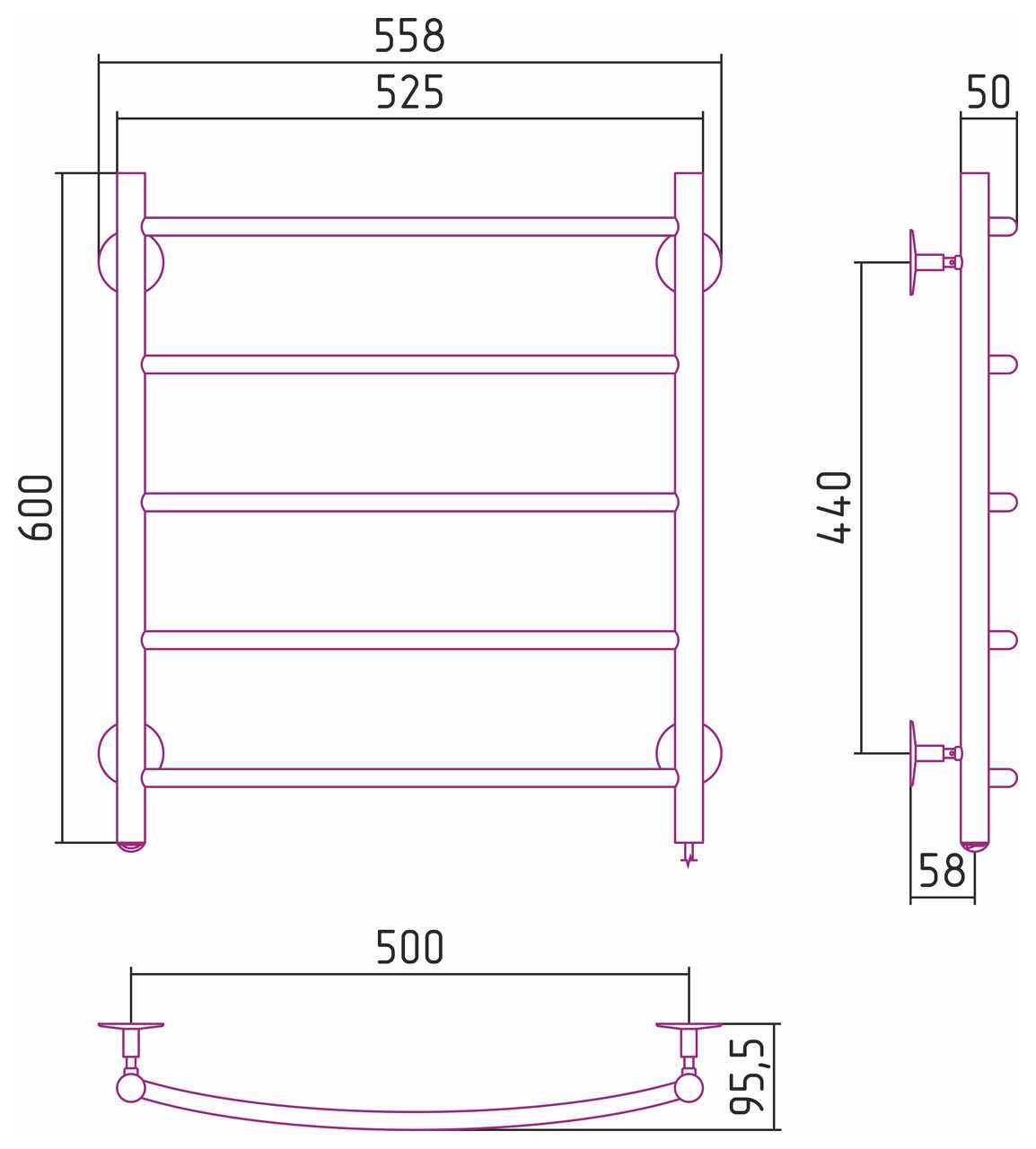 Полотенцесушитель электрический Стилье Формат 40 П 600x500 (5) Г16, хром (00540-6050)