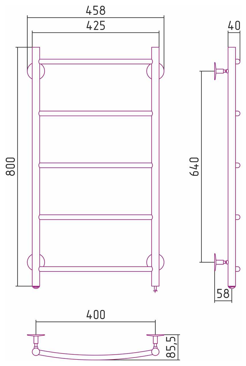 Полотенцесушитель электрический Стилье Формат 40 П 800x400 (5) Г16, хром (00540-8040)