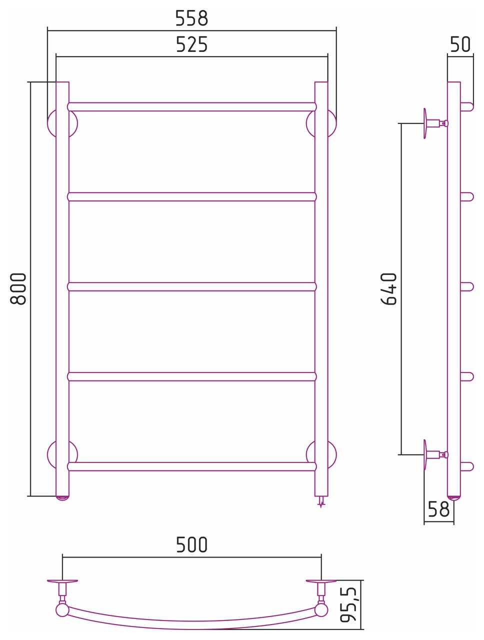 Полотенцесушитель электрический Стилье Формат 40 П 800x500 (5) Г16, хром (00540-8050)