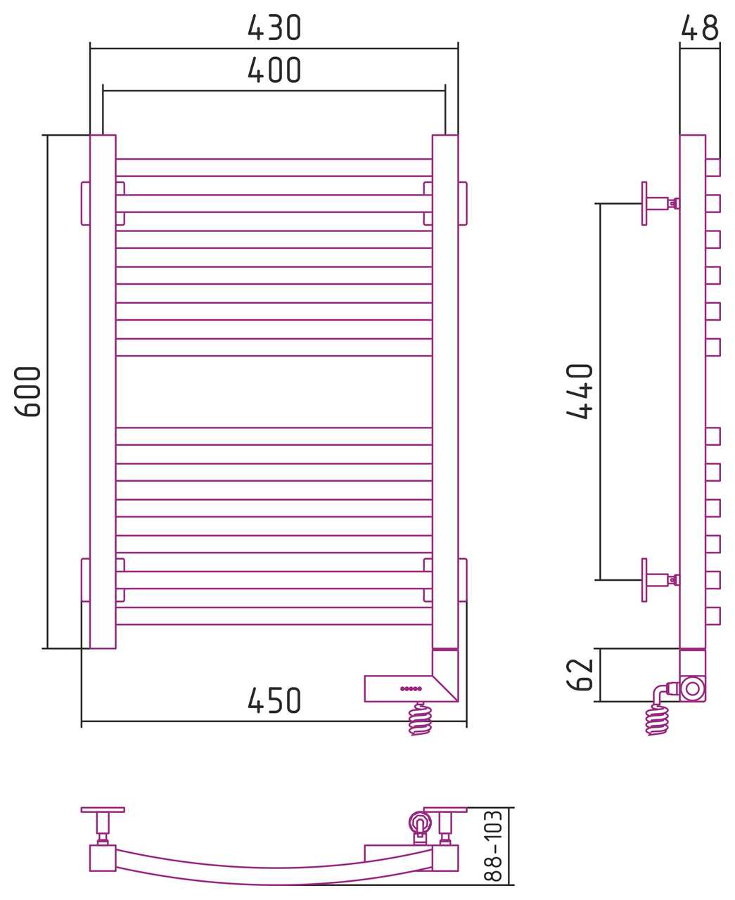 Полотенцесушитель электрический Сунержа Аркус 2.0 600x400 МЭМ правый, белый (12-5605-6040)