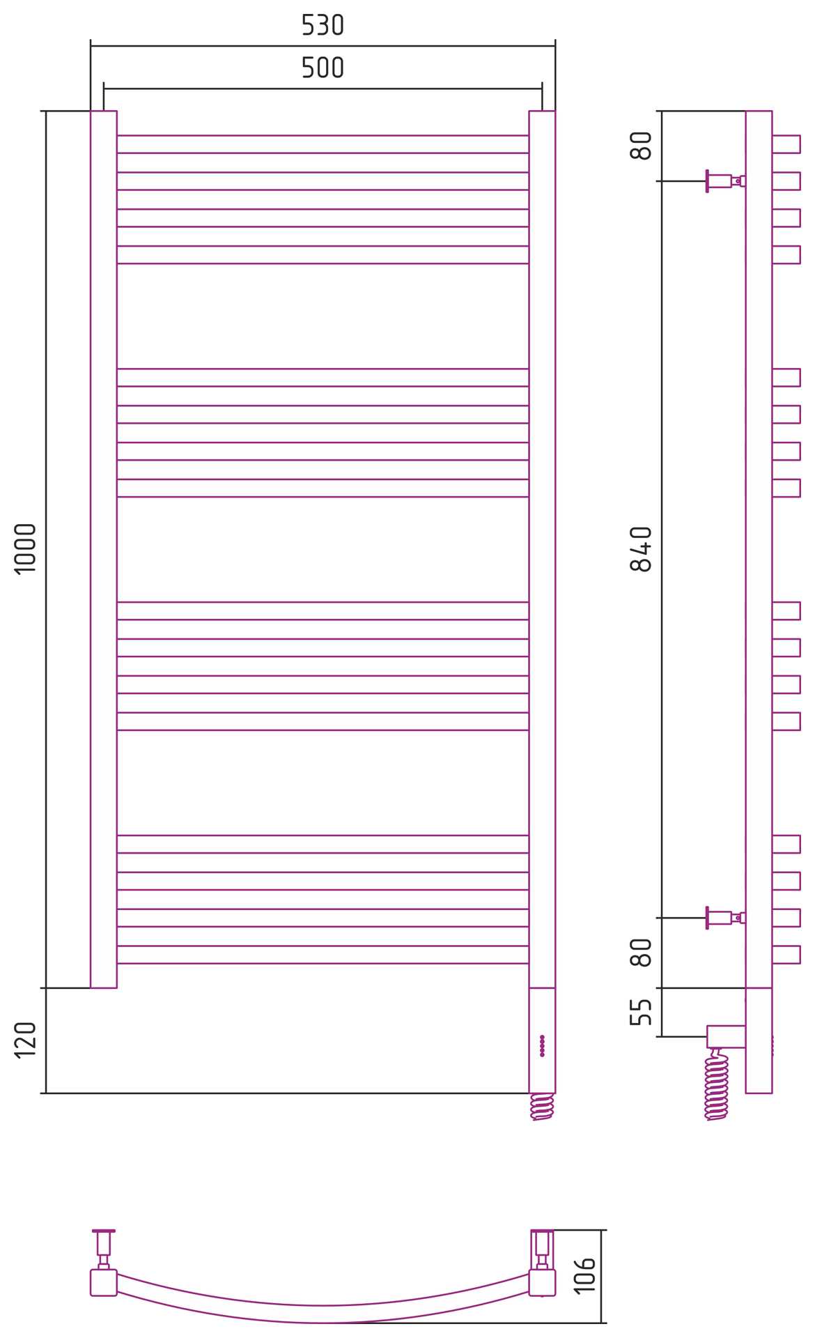 Полотенцесушитель электрический Сунержа Аркус 3.0 1000х500 МЭМ правый, белый (12-5705-1050)