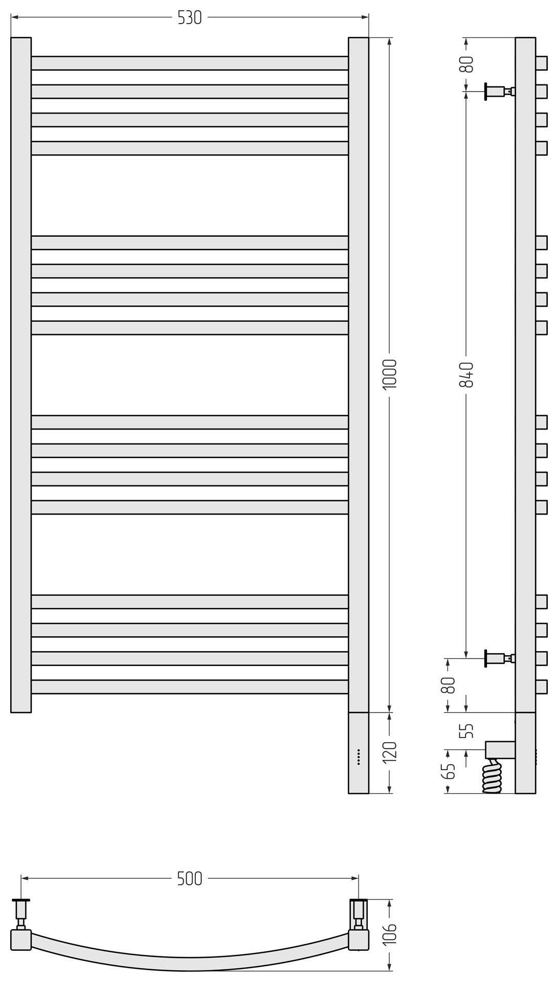 Полотенцесушитель электрический Сунержа Аркус 3.0 1000x500 провод справа матовый чёрный (31-5705-1050)