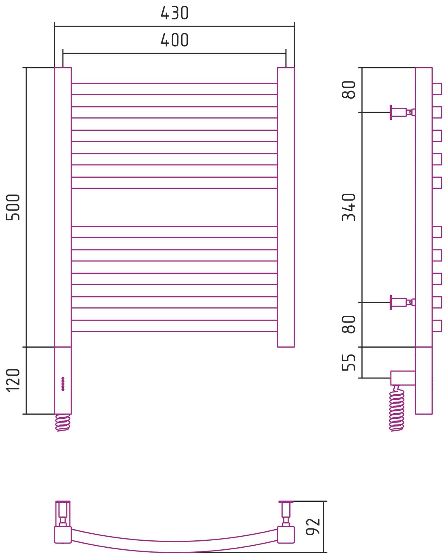 Полотенцесушитель электрический Сунержа Аркус 3.0 500x400 МЭМ левый, хром (00-5704-5040)