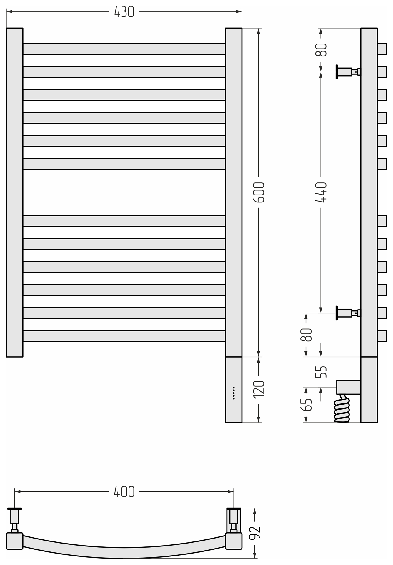 Полотенцесушитель электрический Сунержа Аркус 3.0 600x400 провод справа матовый чёрный (31-5705-6040)
