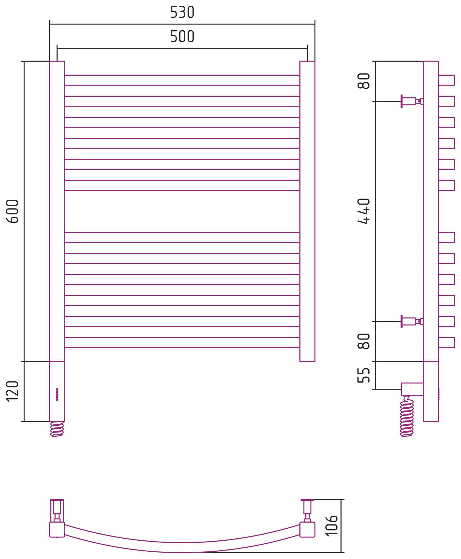 Полотенцесушитель электрический Сунержа Аркус 3.0 600x500 МЭМ левый, хром (00-5704-6050)