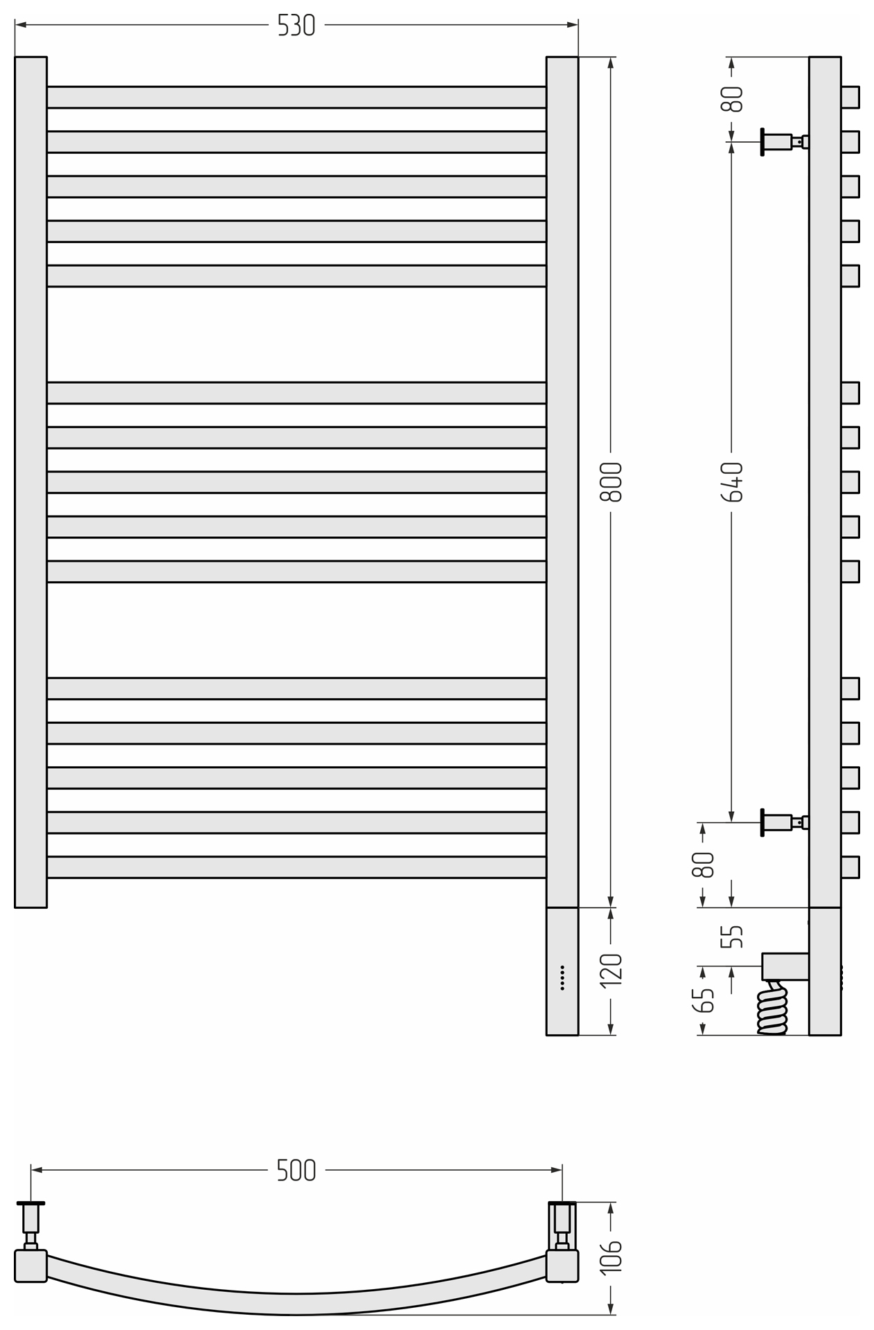 Полотенцесушитель электрический Сунержа Аркус 3.0 800x500 провод справа матовый чёрный (31-5705-8050)