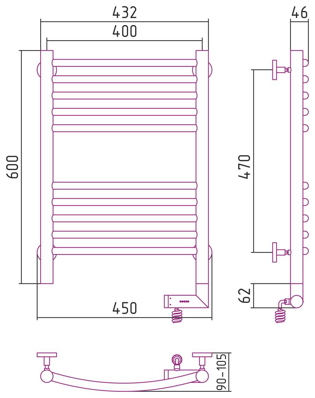 Полотенцесушитель электрический Сунержа Богема 2.0 выгнутая 600x400 МЭМ правый, хром (00-5203-6040)