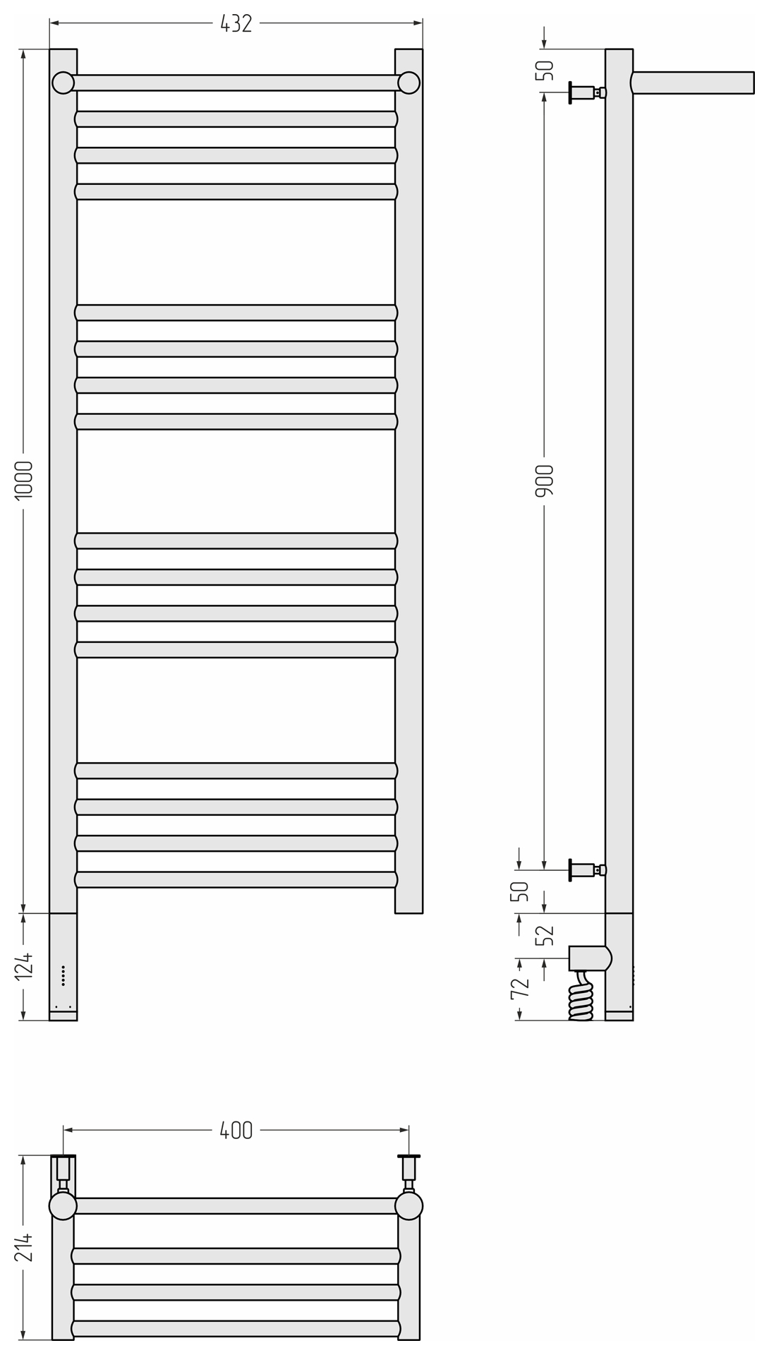Полотенцесушитель электрический Сунержа Богема 3.0 1000x400 с полочкой провод слева матовый белый (30-5806-1040)