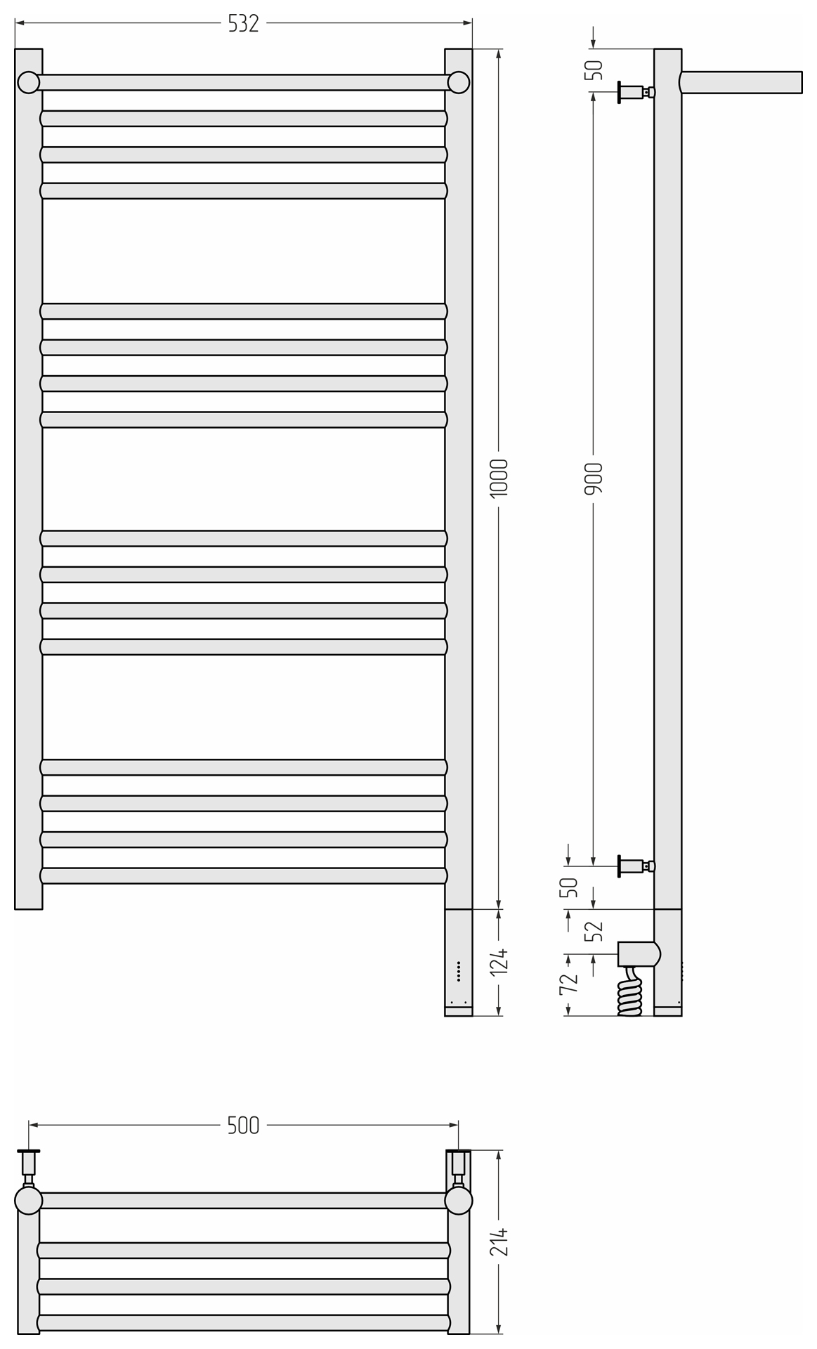 Полотенцесушитель электрический Сунержа Богема 3.0 1000x500 с полочкой провод справа матовый белый (30-5807-1050)