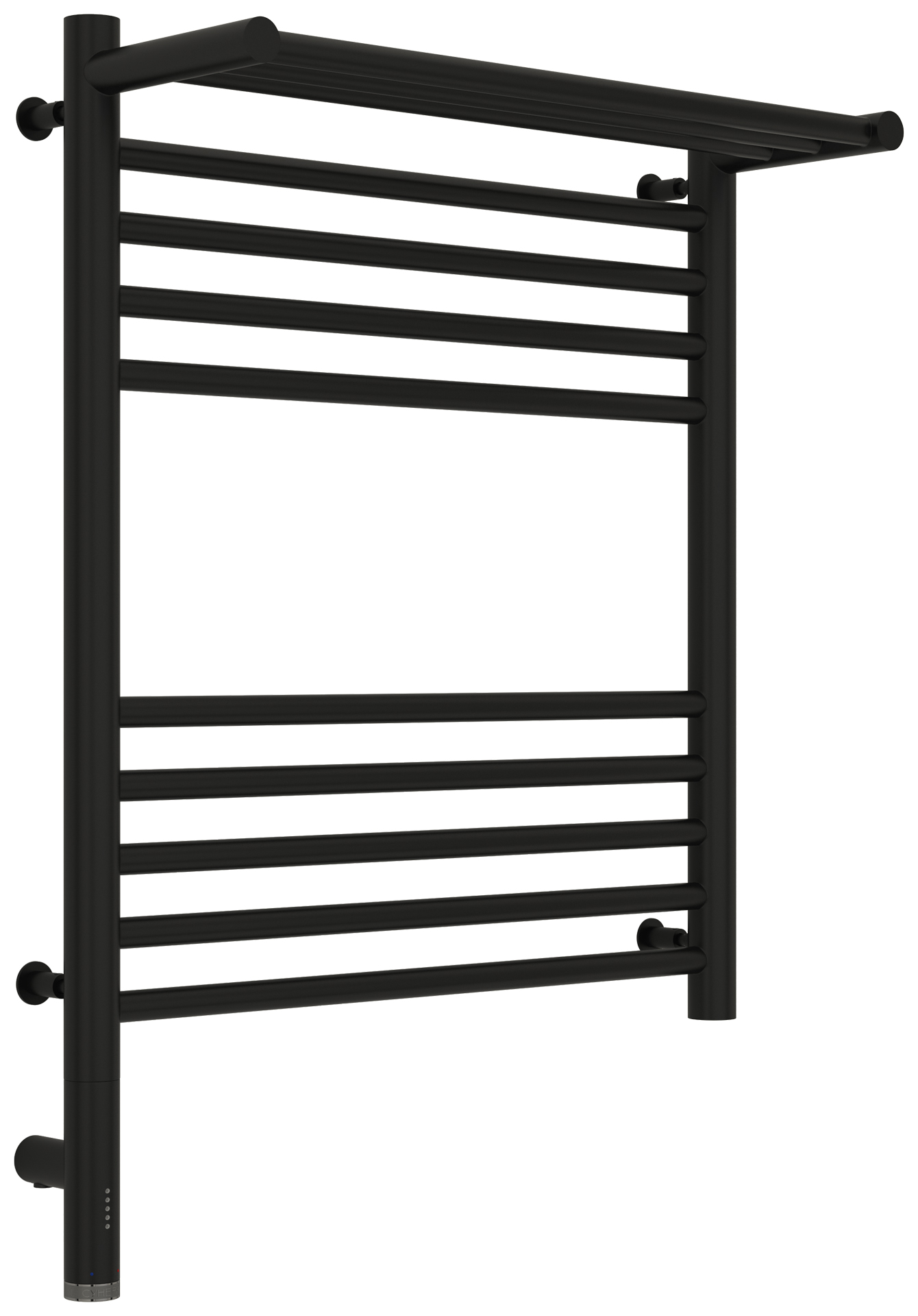Полотенцесушитель электрический Сунержа Богема 3.0 600x500 с полочкой провод слева матовый чёрный (31-5806-6050)