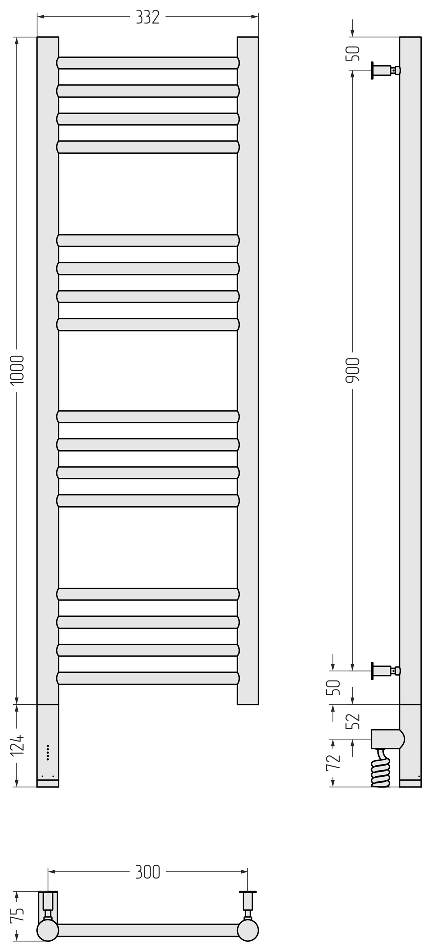 Полотенцесушитель электрический Сунержа Богема 3.0 прямая 1000x300 провод слева матовый чёрный (31-5804-1030)