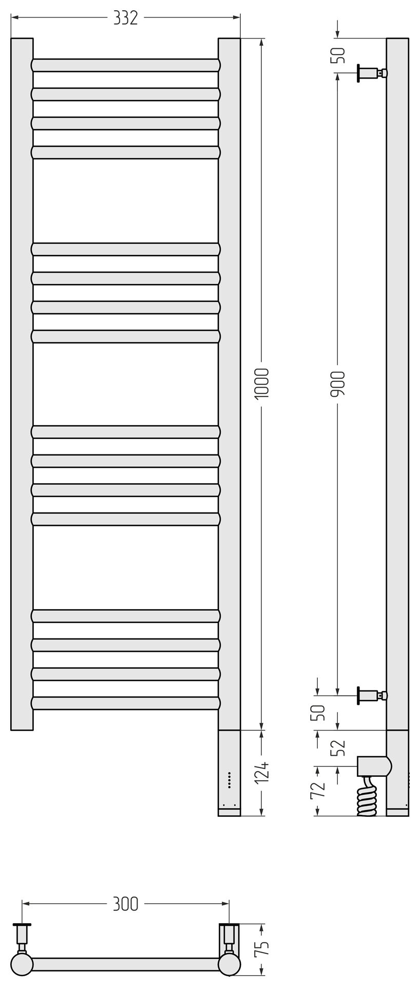 Полотенцесушитель электрический Сунержа Богема 3.0 прямая 1000x300 провод справа матовый чёрный (31-5805-1030)