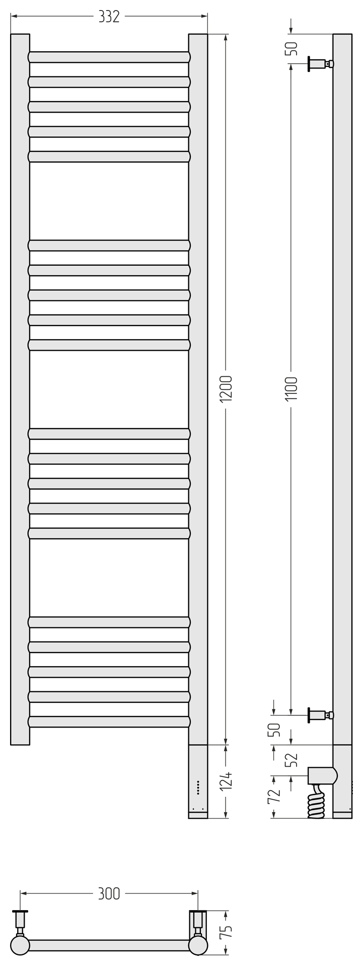 Полотенцесушитель электрический Сунержа Богема 3.0 прямая 1200x300 провод справа матовый чёрный (31-5805-1230)