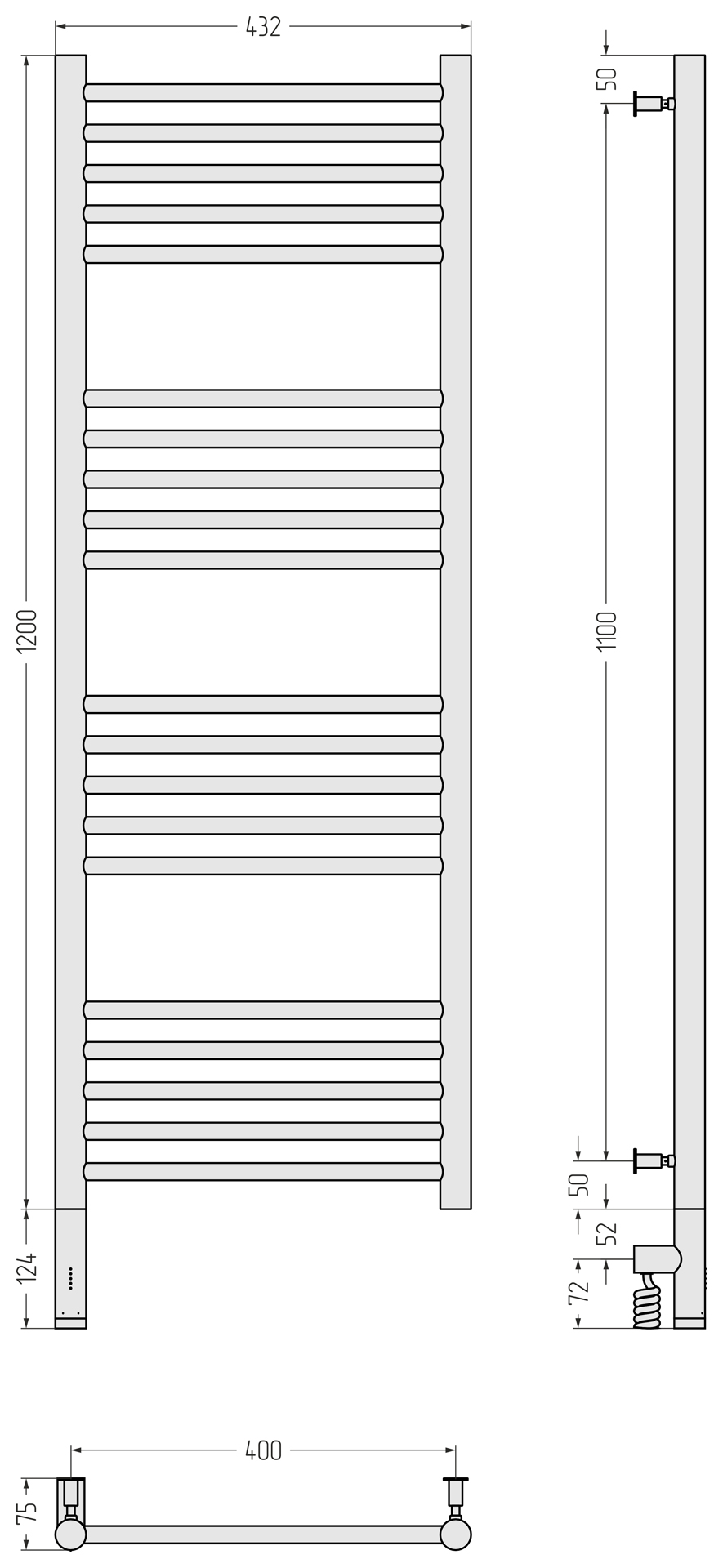 Полотенцесушитель электрический Сунержа Богема 3.0 прямая 1200x400 провод слева матовый чёрный (31-5804-1240)