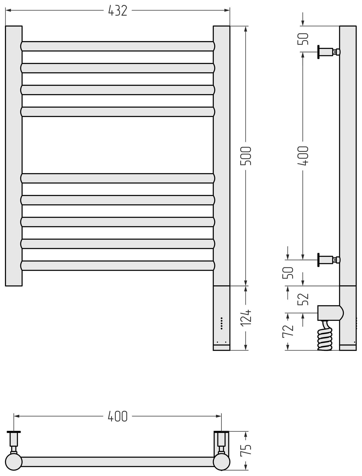 Полотенцесушитель электрический Сунержа Богема 3.0 прямая 500x400 провод справа матовый чёрный (31-5805-5040)