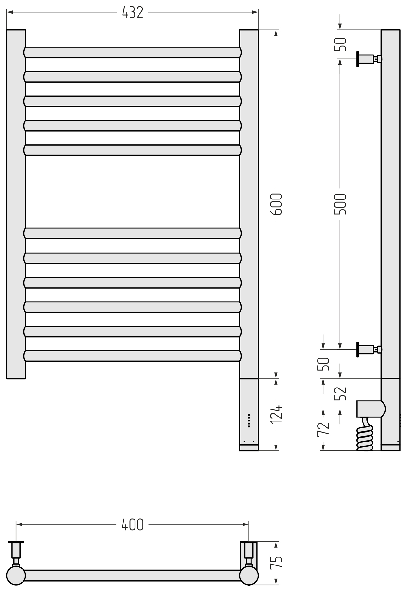 Полотенцесушитель электрический Сунержа Богема 3.0 прямая 600x400 провод справа матовый чёрный (31-5805-6040)