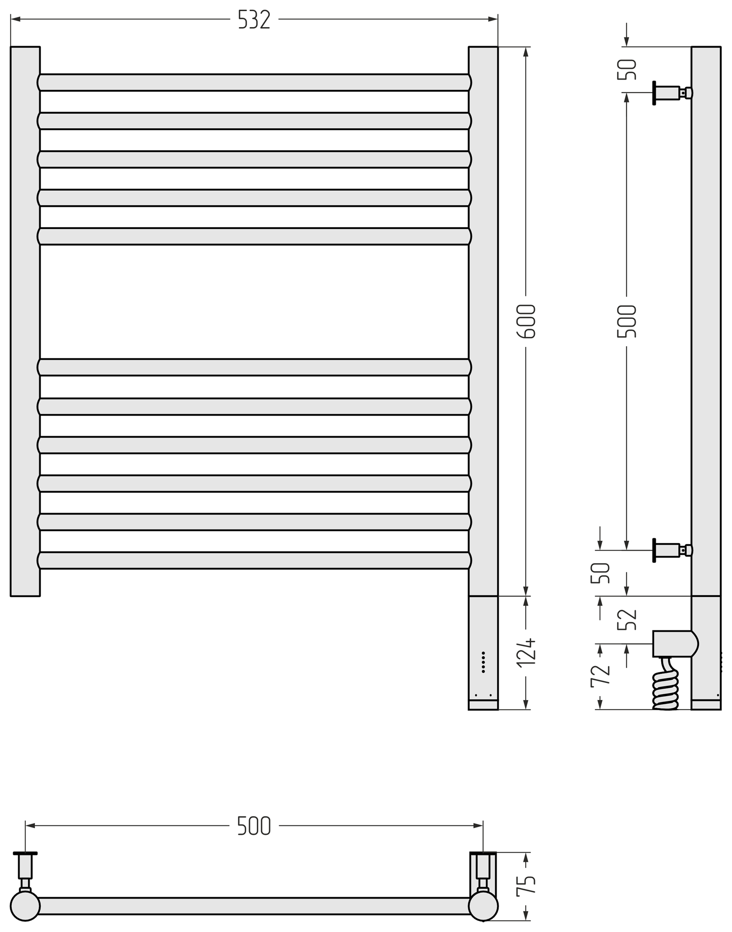 Полотенцесушитель электрический Сунержа Богема 3.0 прямая 600x500 провод справа матовый чёрный (31-5805-6050)