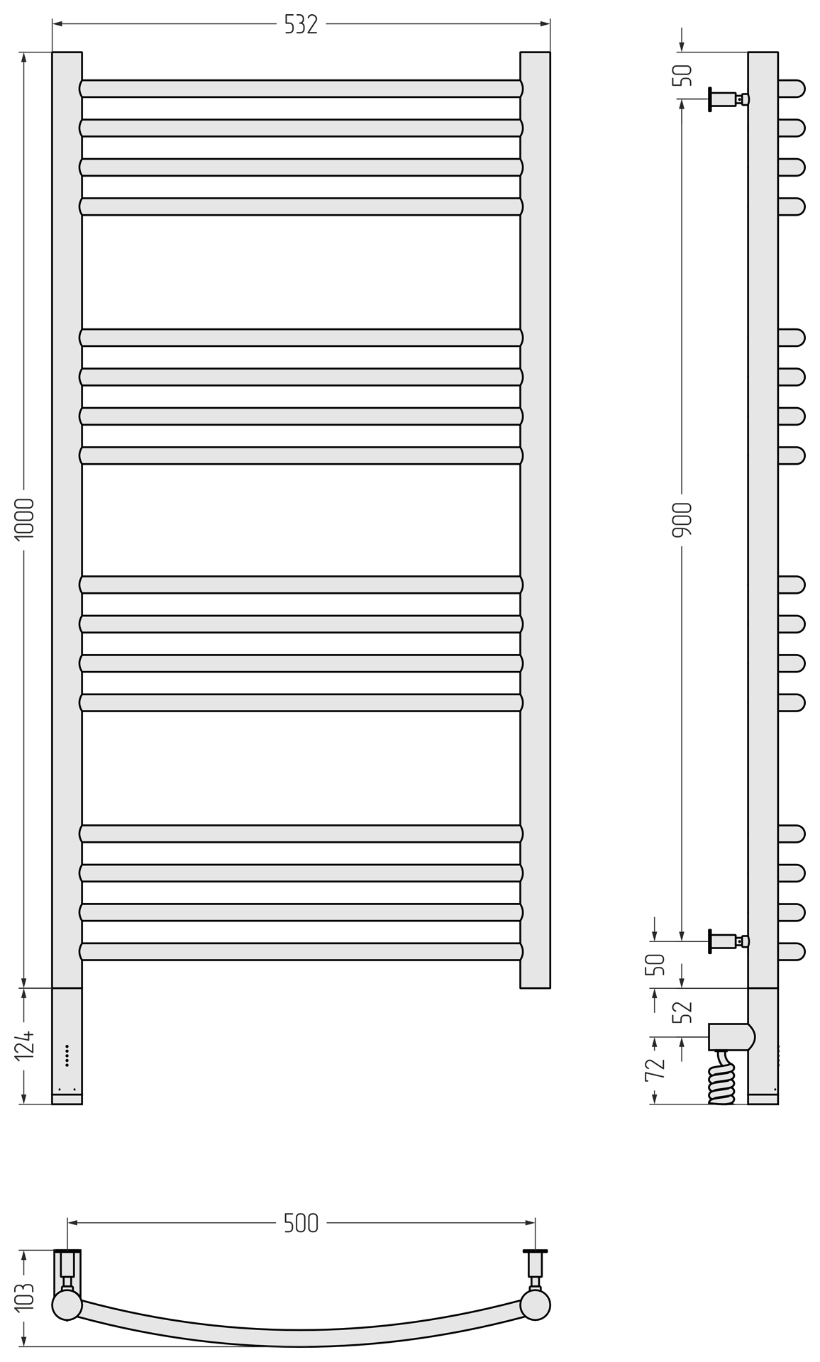 Полотенцесушитель электрический Сунержа Богема 3.0 выгнутая 1000x500 провод слева матовый белый (30-5802-1050)