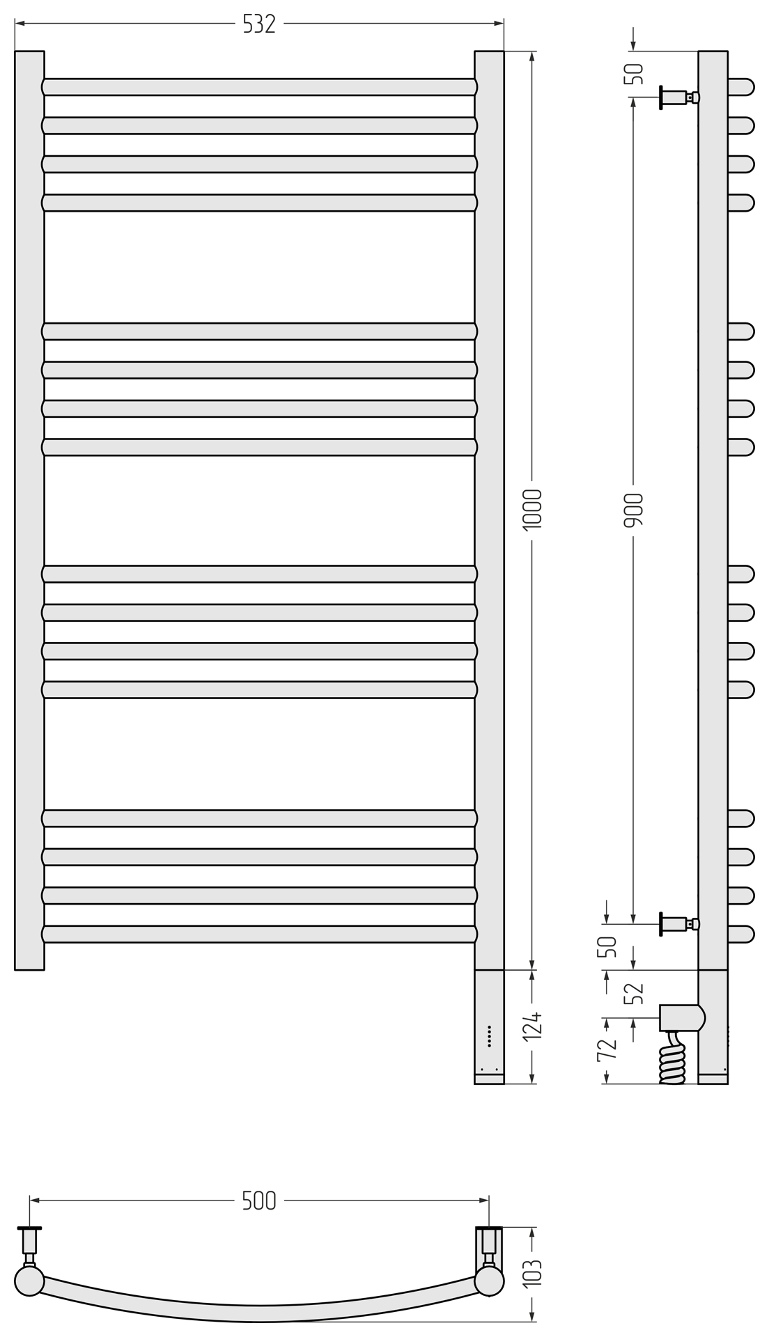 Полотенцесушитель электрический Сунержа Богема 3.0 выгнутая 1000x500 провод справа матовый чёрный (31-5803-1050)