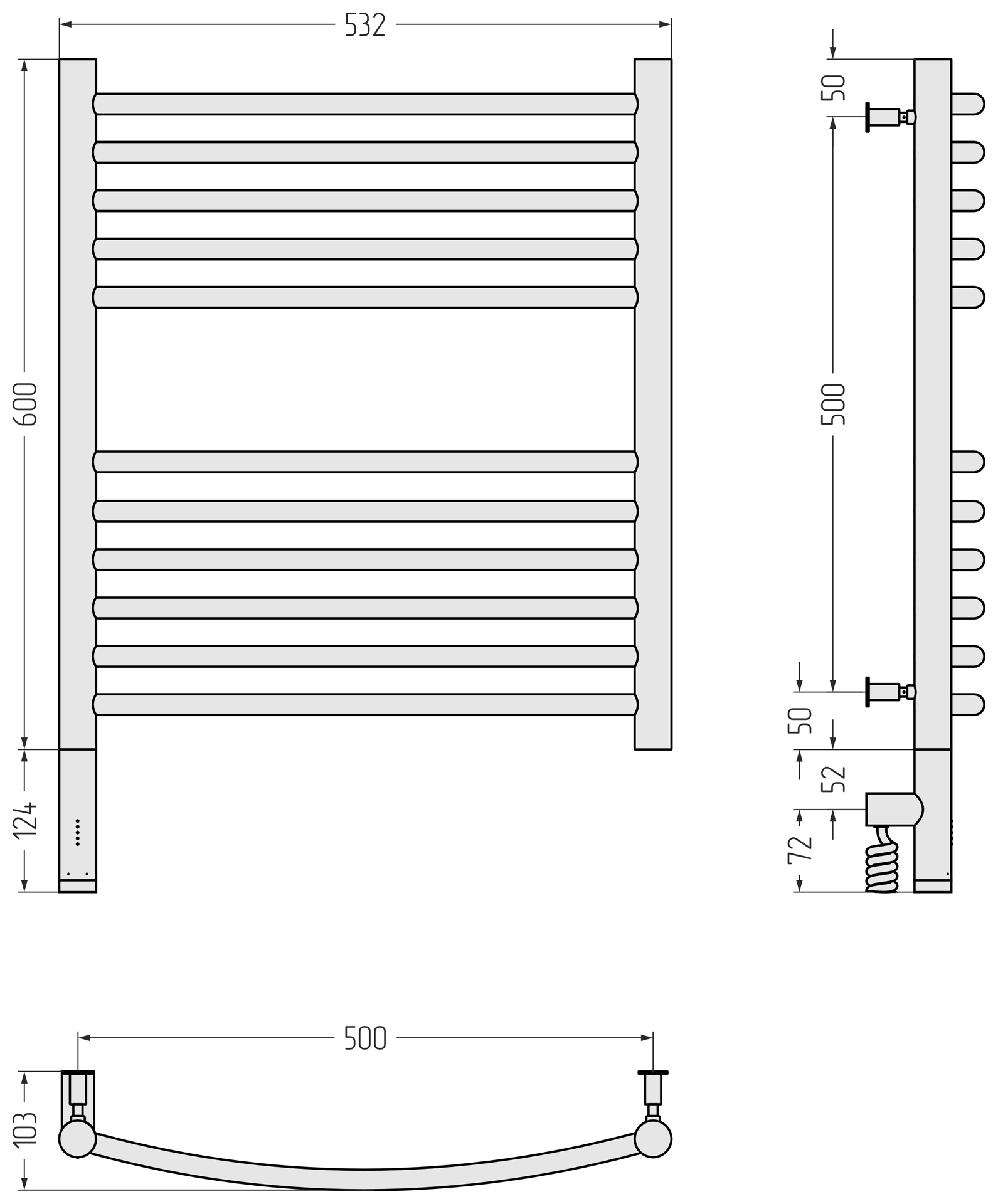 Полотенцесушитель электрический Сунержа Богема 3.0 выгнутая 600x500 провод слева матовый чёрный (31-5802-6050)
