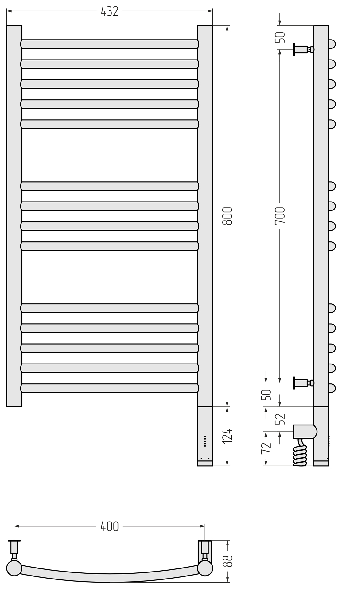 Полотенцесушитель электрический Сунержа Богема 3.0 выгнутая 800x400 провод справа матовый белый (30-5803-8040)