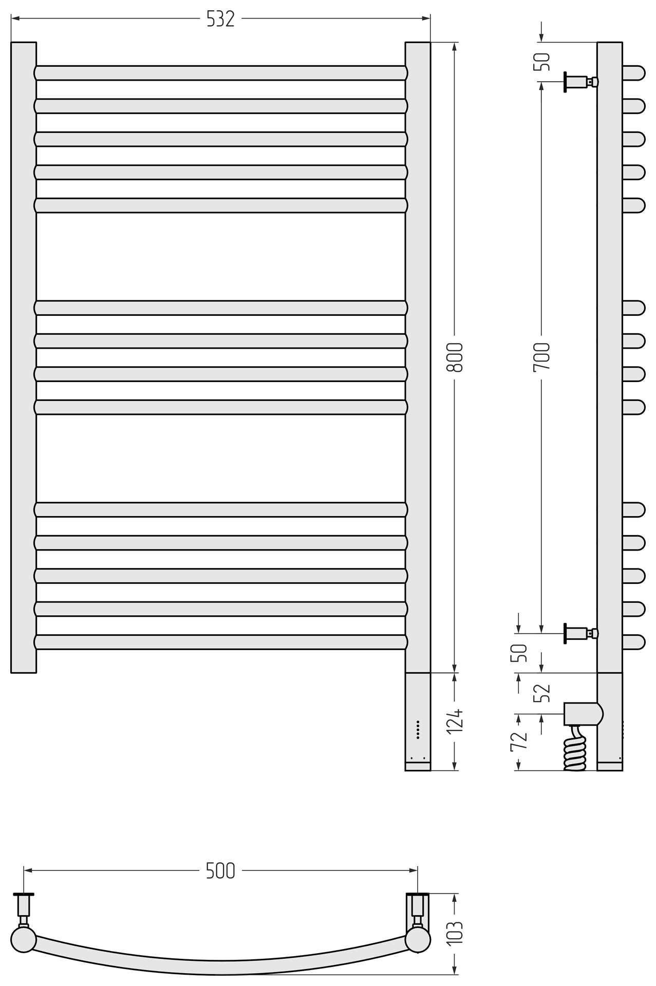 Полотенцесушитель электрический Сунержа Богема 3.0 выгнутая 800x500 провод справа матовый чёрный (31-5803-8050)