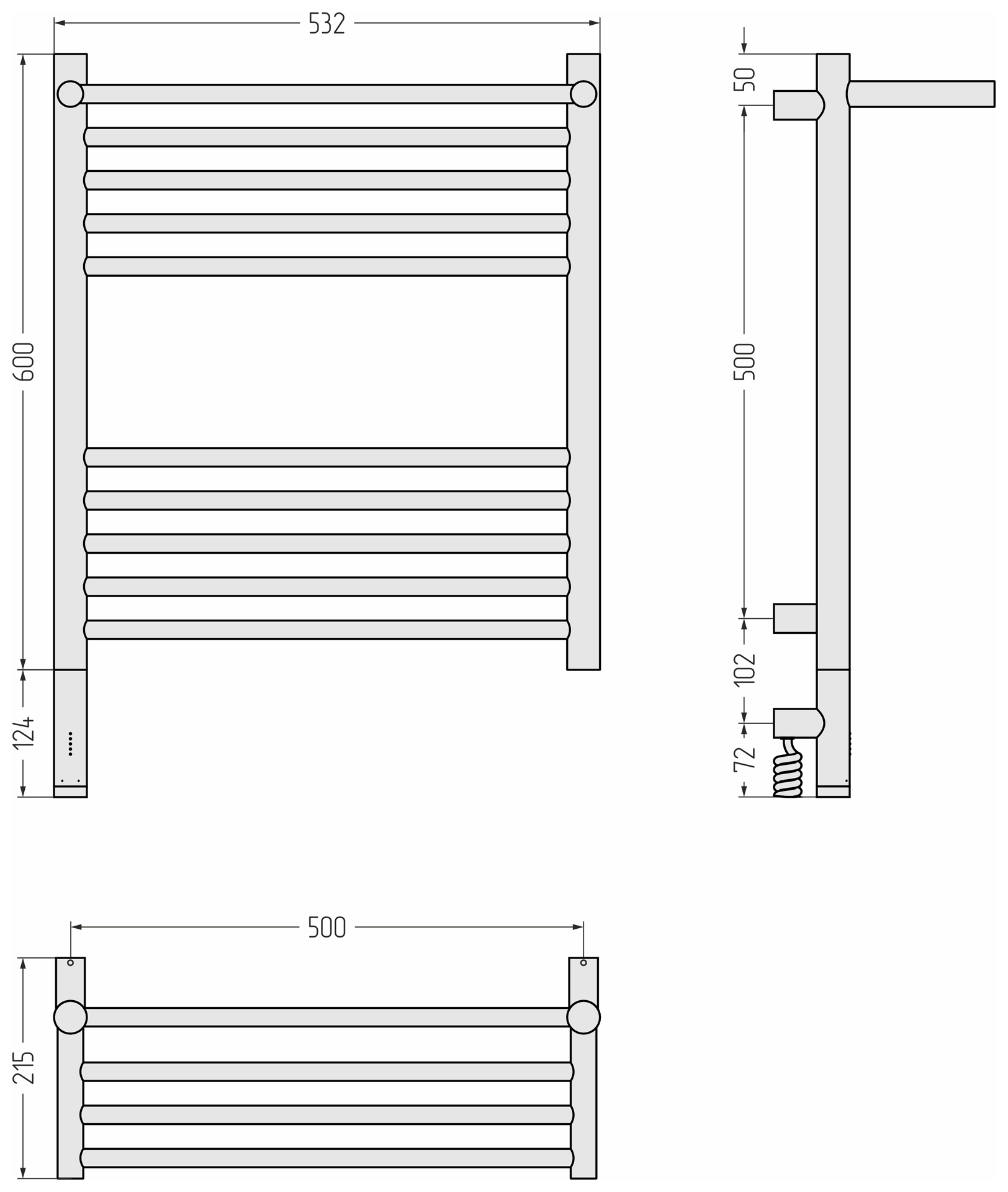 Состав поставки: полотенцесушитель, спускной клапан, отражатели, эксцентрики и опоры кронштейнов, комплект прокладок, шестигранные ключи, дюбели и саморезы