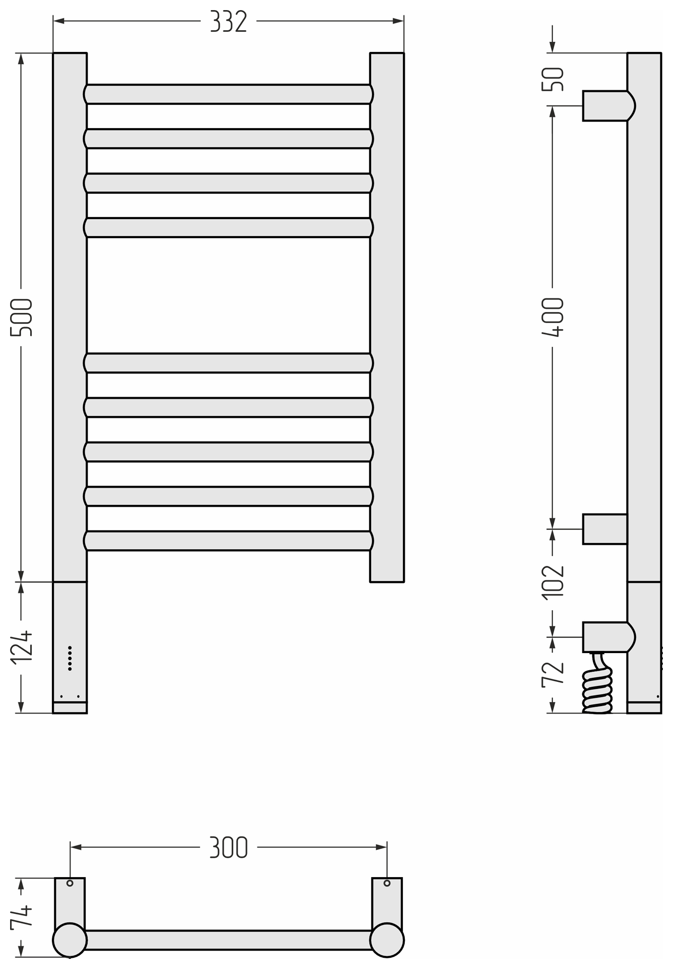 Полотенцесушитель электрический Сунержа Богема 3.1 500х300 МЭМ провод слева (00-6004-5030)