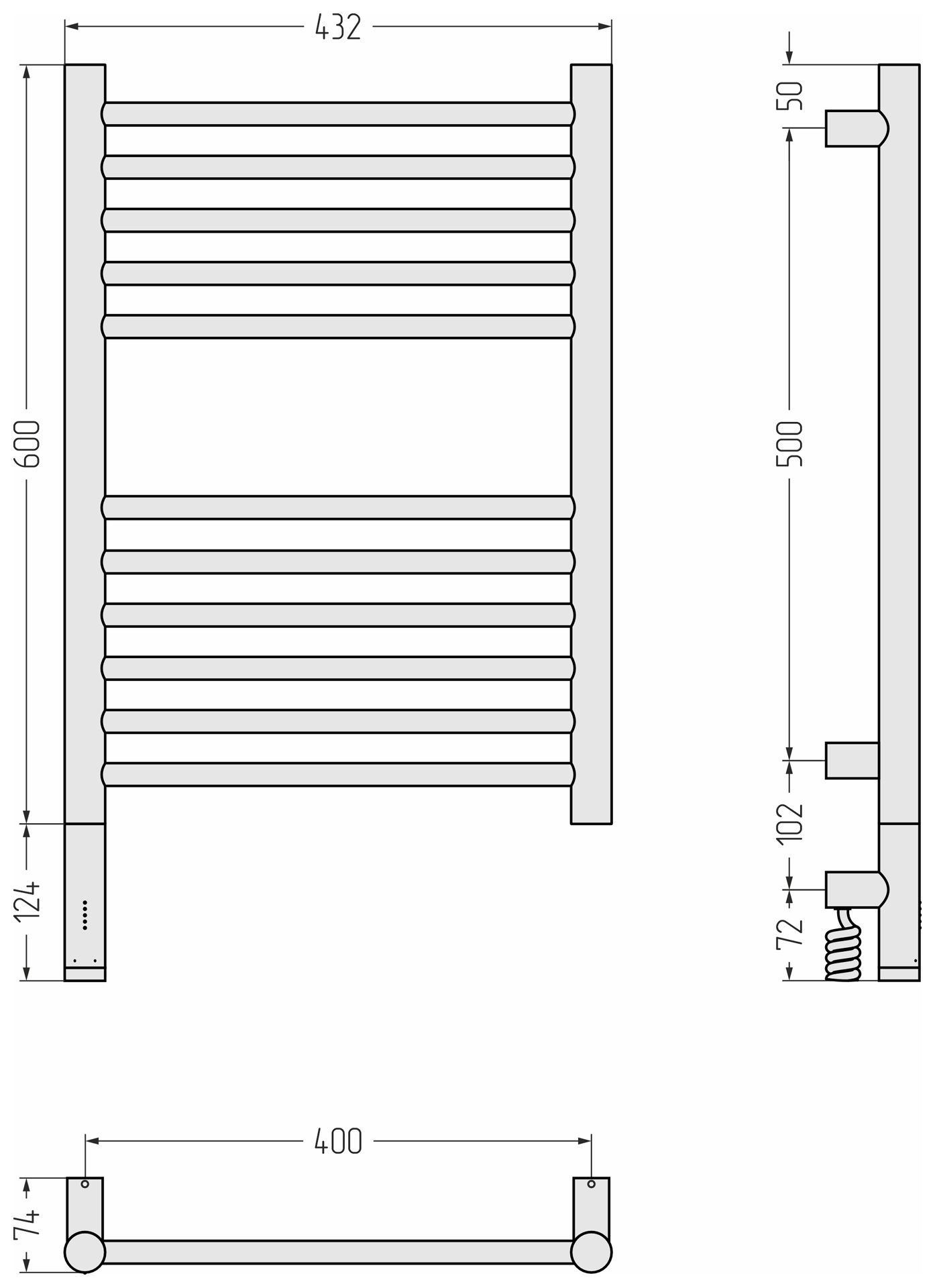 Полотенцесушитель электрический Сунержа Богема 3.1 600х400 МЭМ провод слева (00-6004-6040)