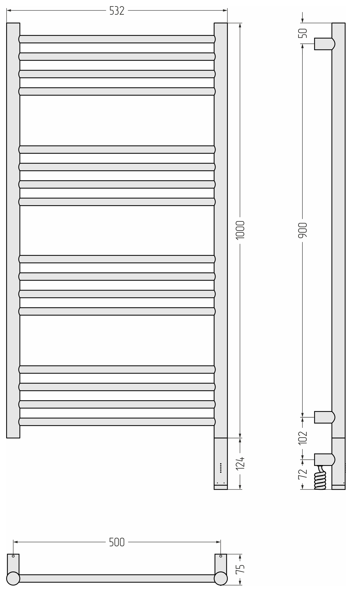 Полотенцесушитель электрический Сунержа Богема 3.1 прямая 1000x500 провод справа матовый белый (30-6005-1050)