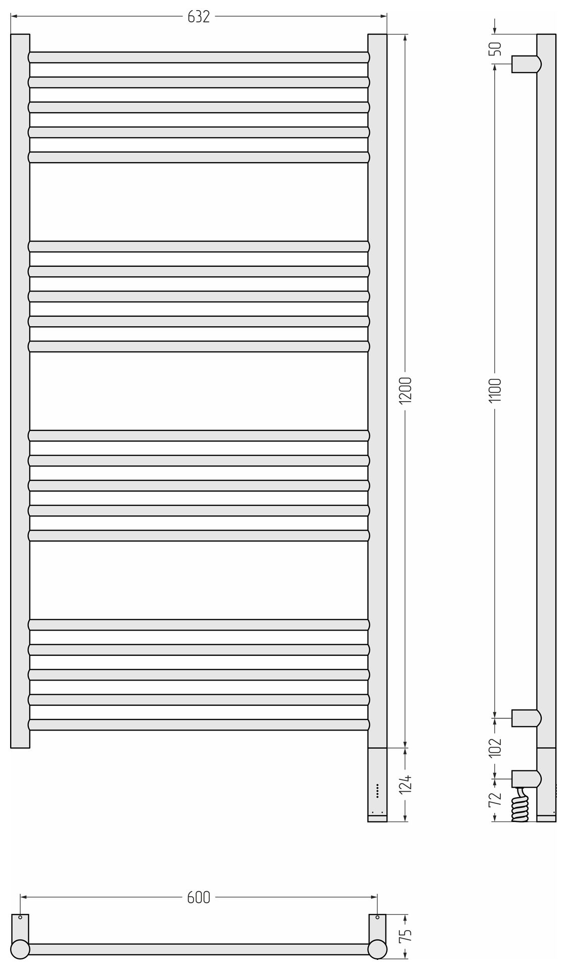 Полотенцесушитель электрический Сунержа Богема 3.1 прямая 1200x600 провод справа матовый чёрный (31-6005-1260)