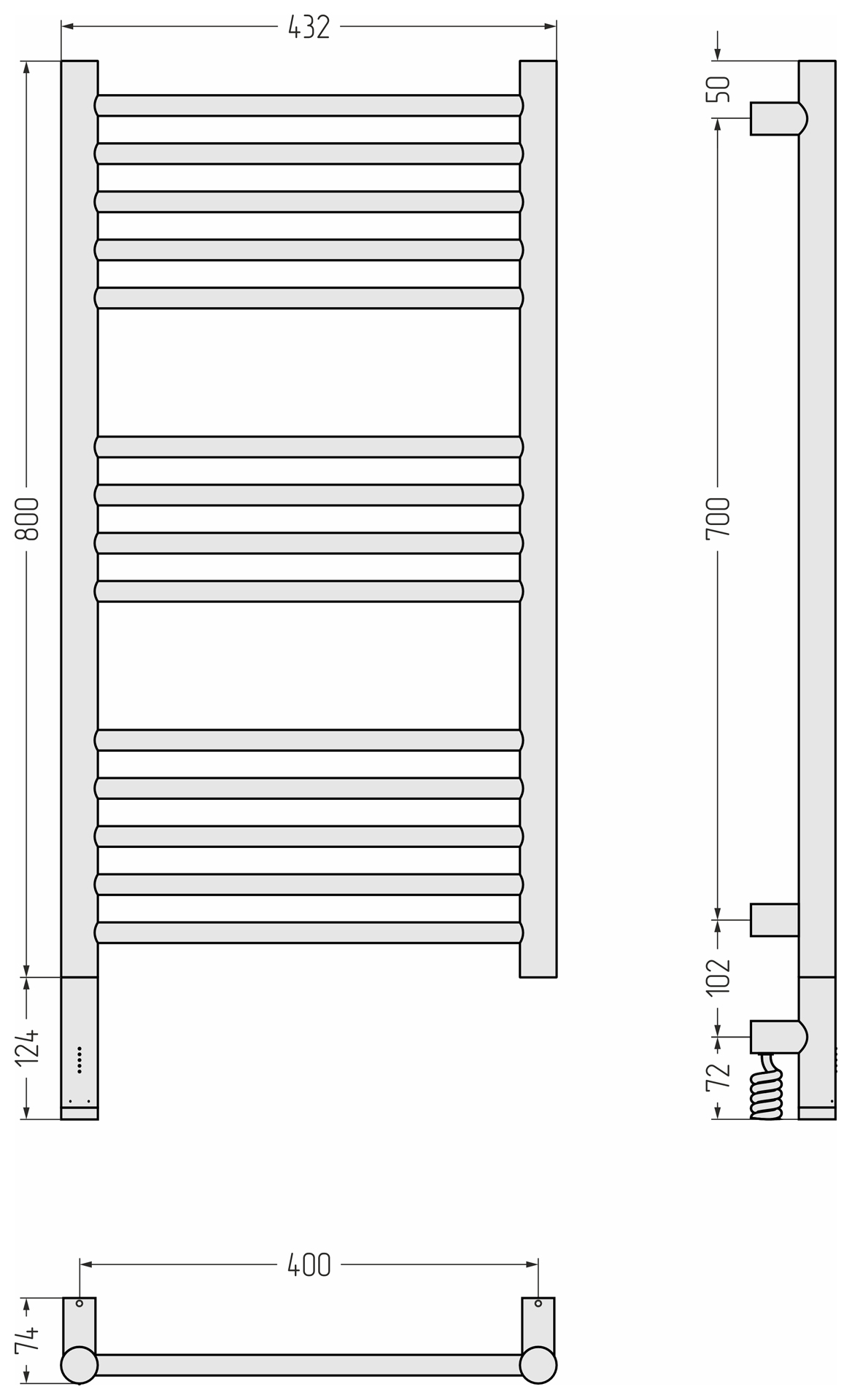 Полотенцесушитель электрический Сунержа Богема 3.1 прямая 800x400 провод слева матовый чёрный (31-6004-8040)