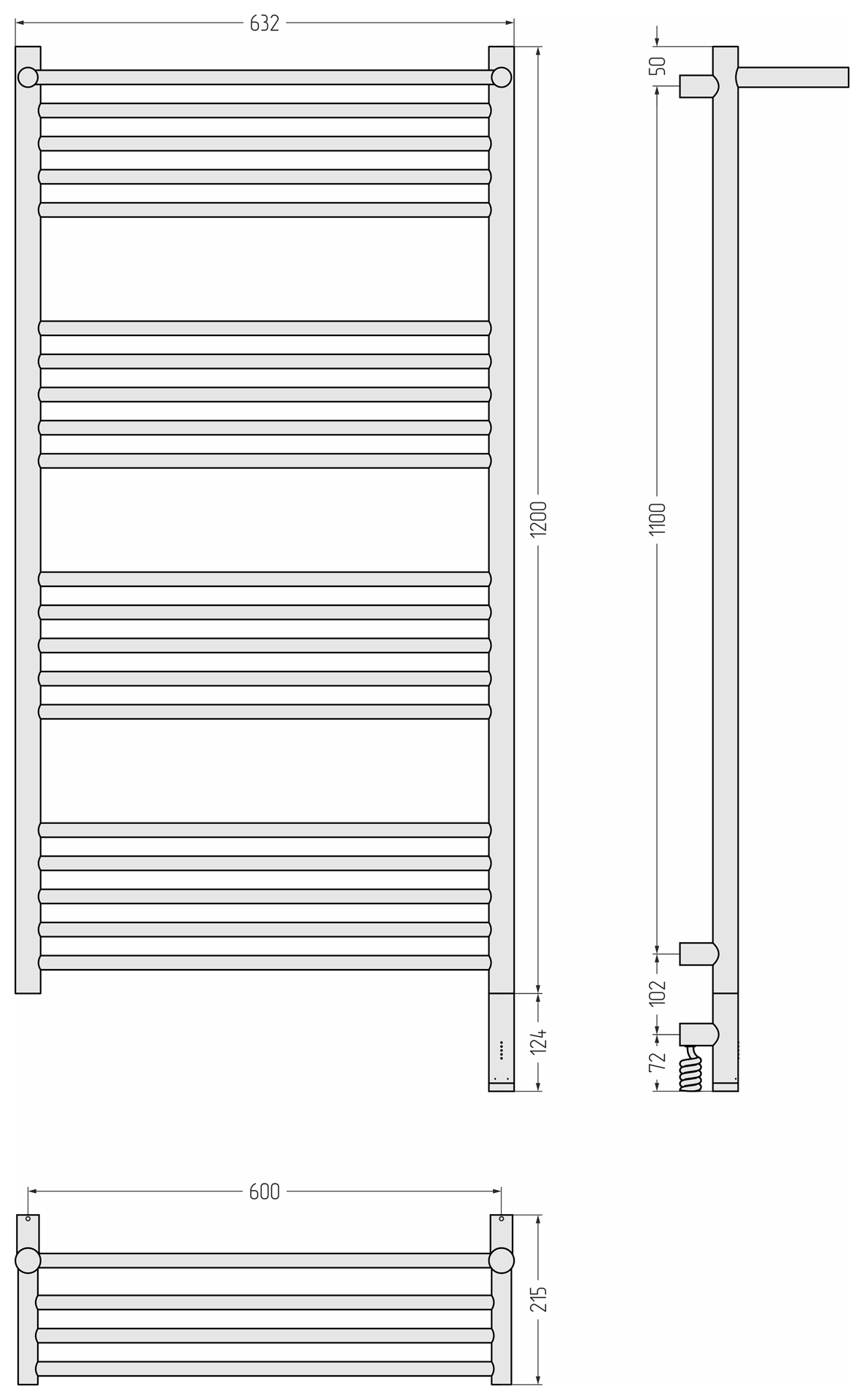 Состав поставки: полотенцесушитель, кабель, клеммы для скрытого монтажа, скрытые крепления, декоративная заглушка, шестигранный ключ, дюбели и саморезы