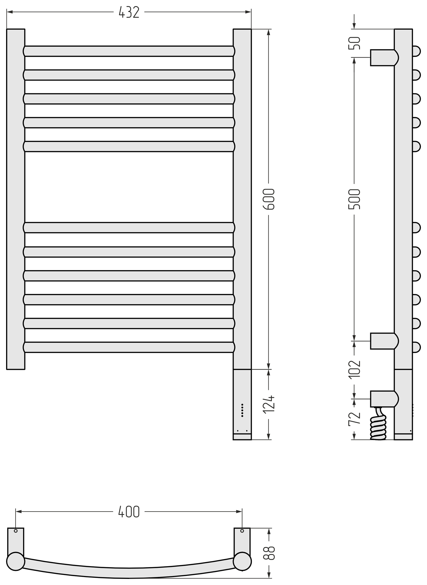 Полотенцесушитель электрический Сунержа Богема 3.1 выгнутая 600x400 провод справа матовый чёрный (31-6003-6040)