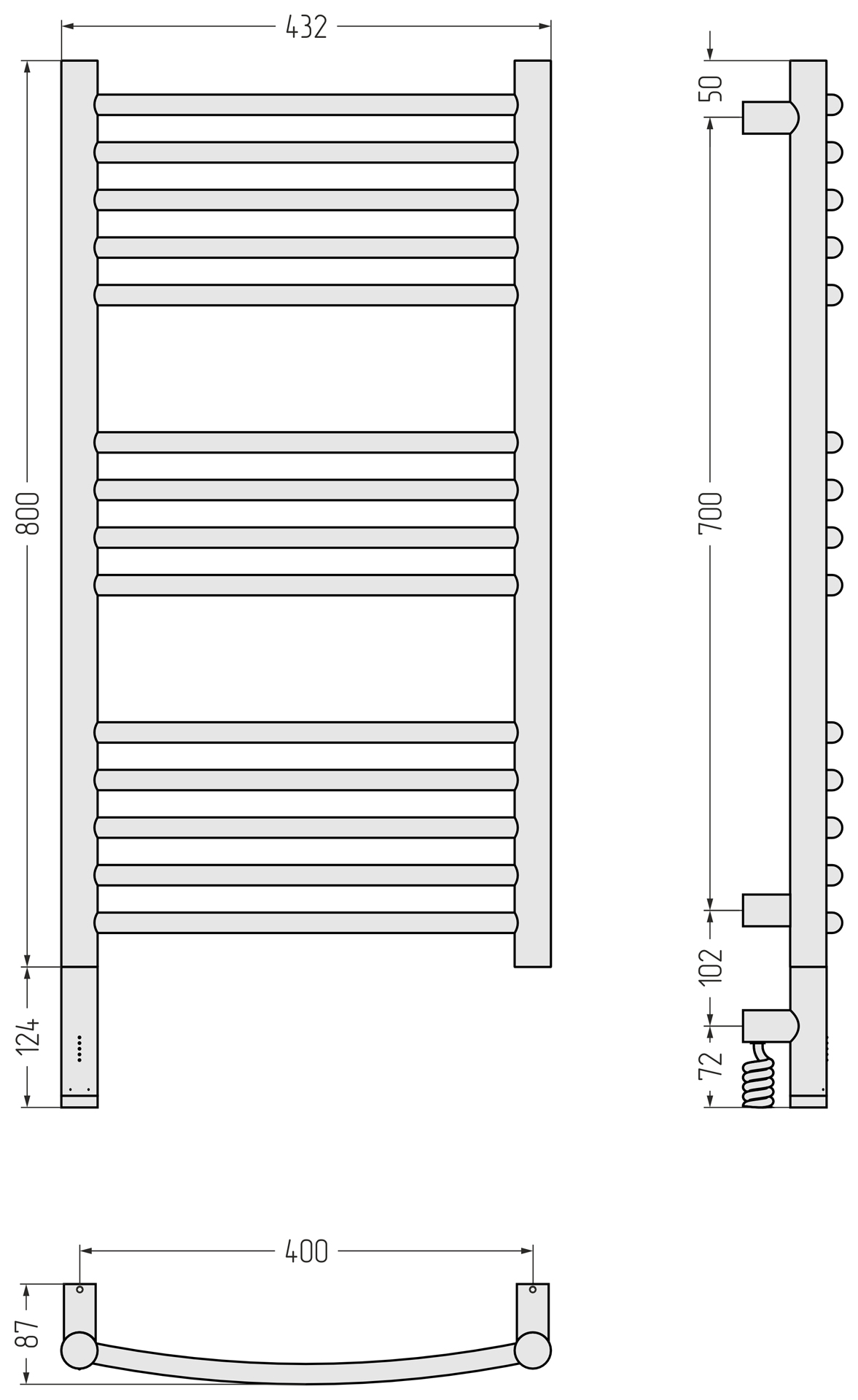 Полотенцесушитель электрический Сунержа Богема 3.1 выгнутая 800x400 провод слева матовый чёрный (31-6002-8040)