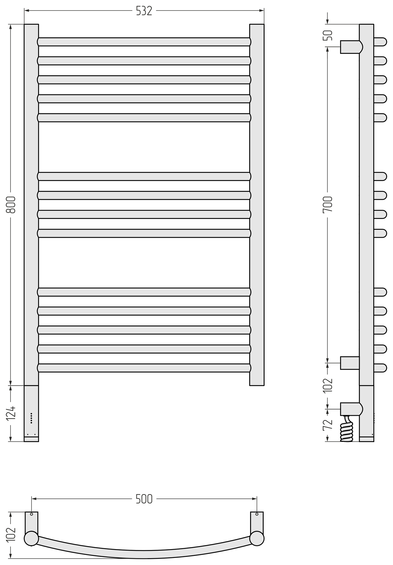 Полотенцесушитель электрический Сунержа Богема 3.1 выгнутая 800x500 провод слева матовый чёрный (31-6002-8050)