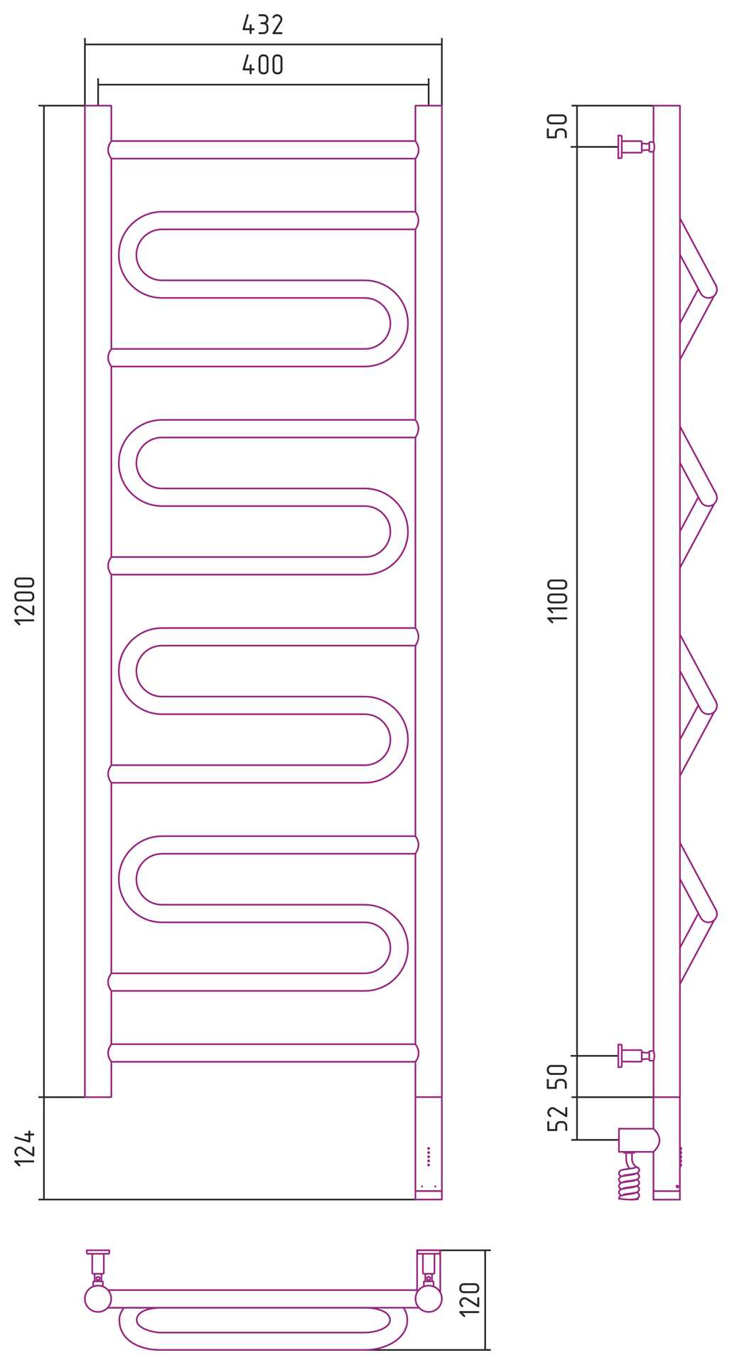 Полотенцесушитель электрический Сунержа Элегия 3.0 1200x400 МЭМ правый, хром (00-5819-1240)