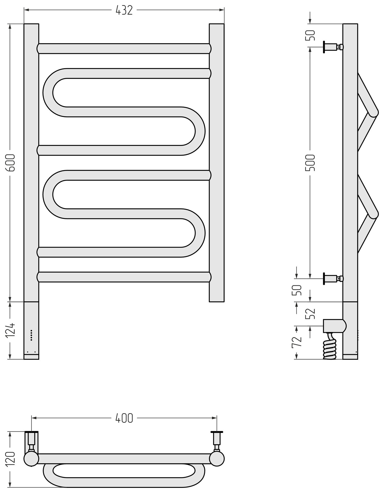 Полотенцесушитель электрический Сунержа Элегия 3.0 600x400 провод слева матовый белый (30-5818-6040)