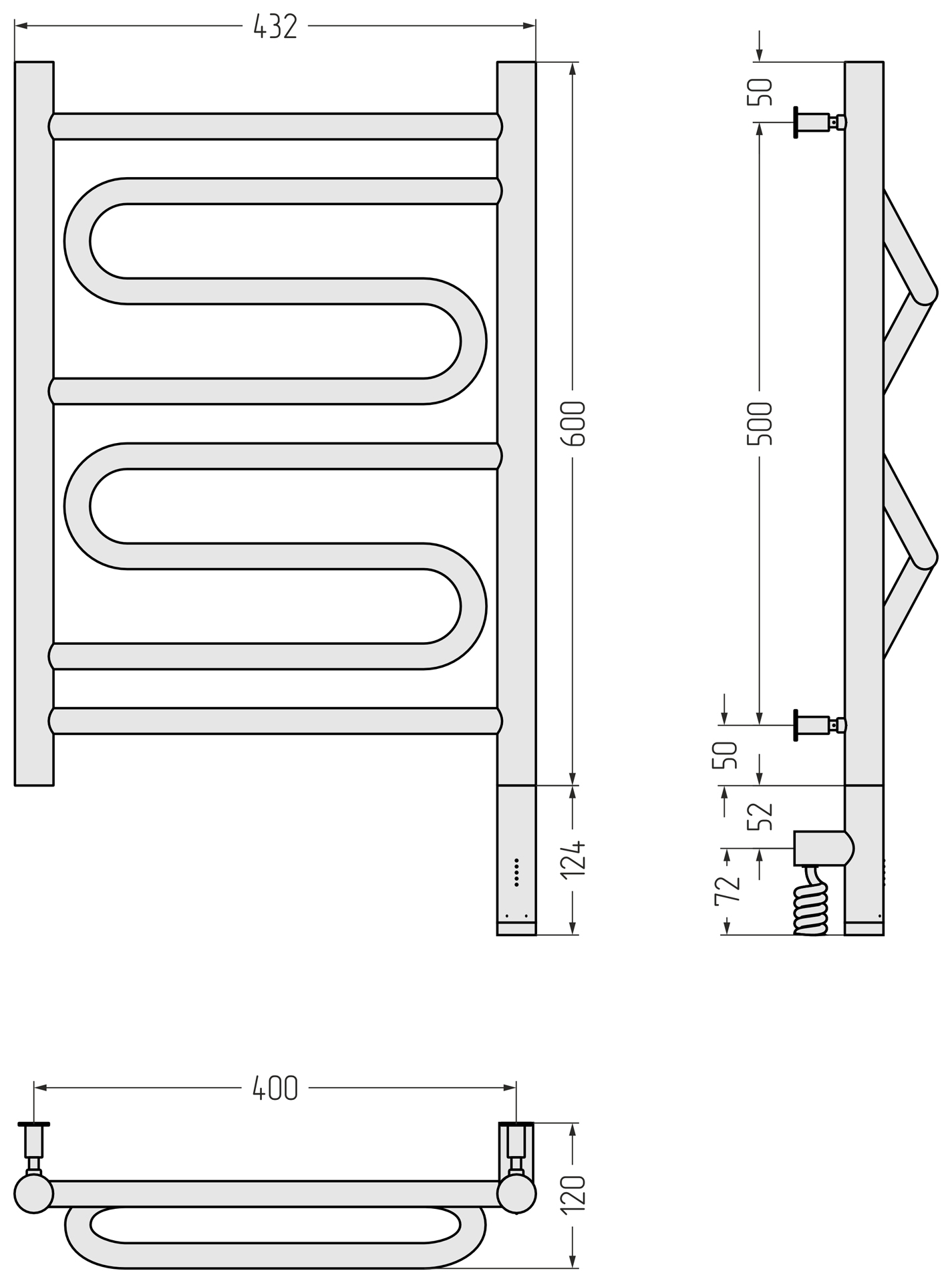 Полотенцесушитель электрический Сунержа Элегия 3.0 600x400 провод справа матовый чёрный (31-5819-6040)