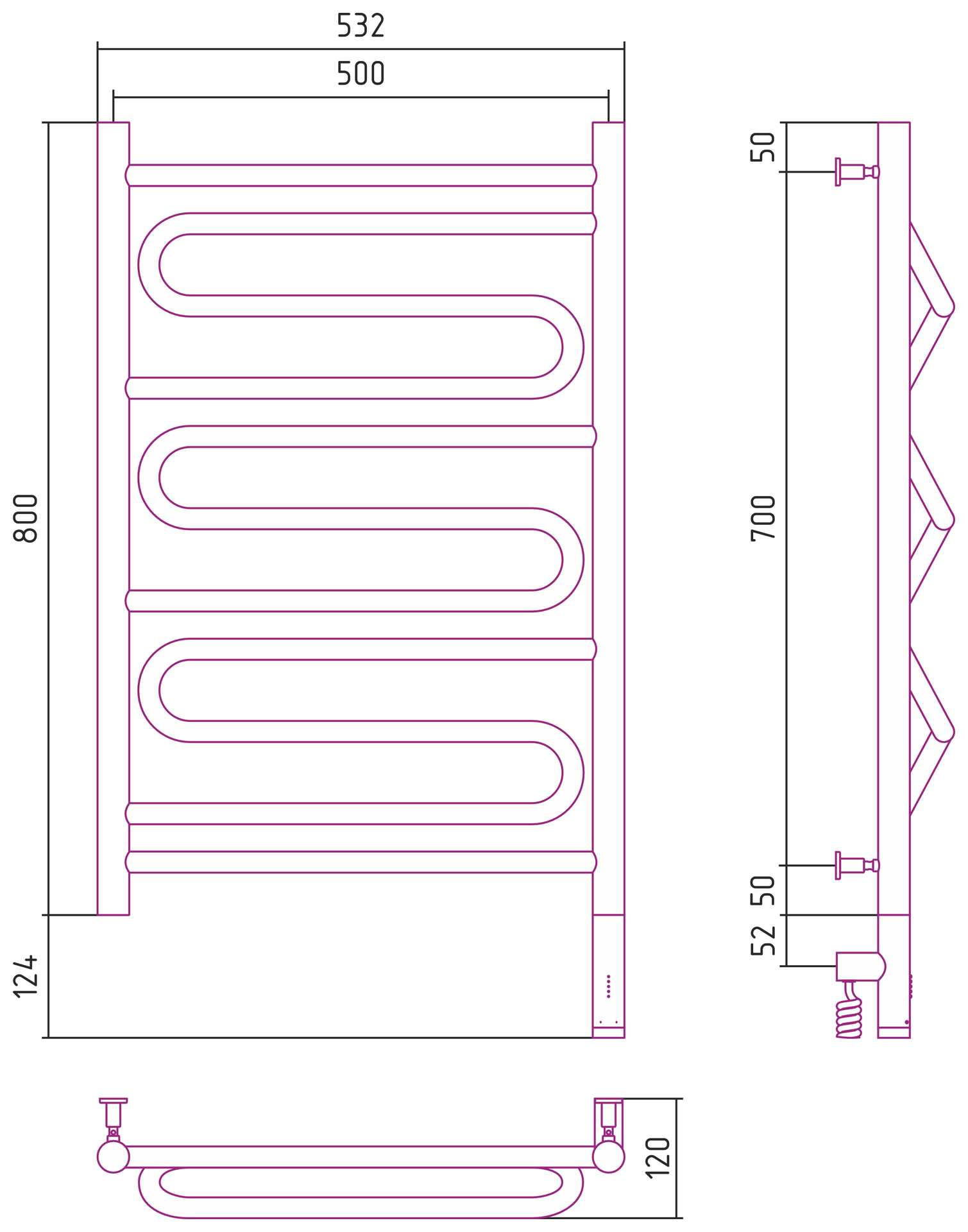 Комплектация: Полотенцесушитель, провод с вилкой, крепление