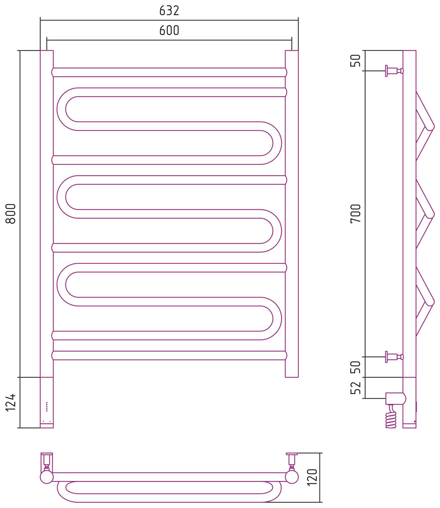 Полотенцесушитель электрический Сунержа Элегия 3.0 800x600 МЭМ левый, белый (12-5818-8060)