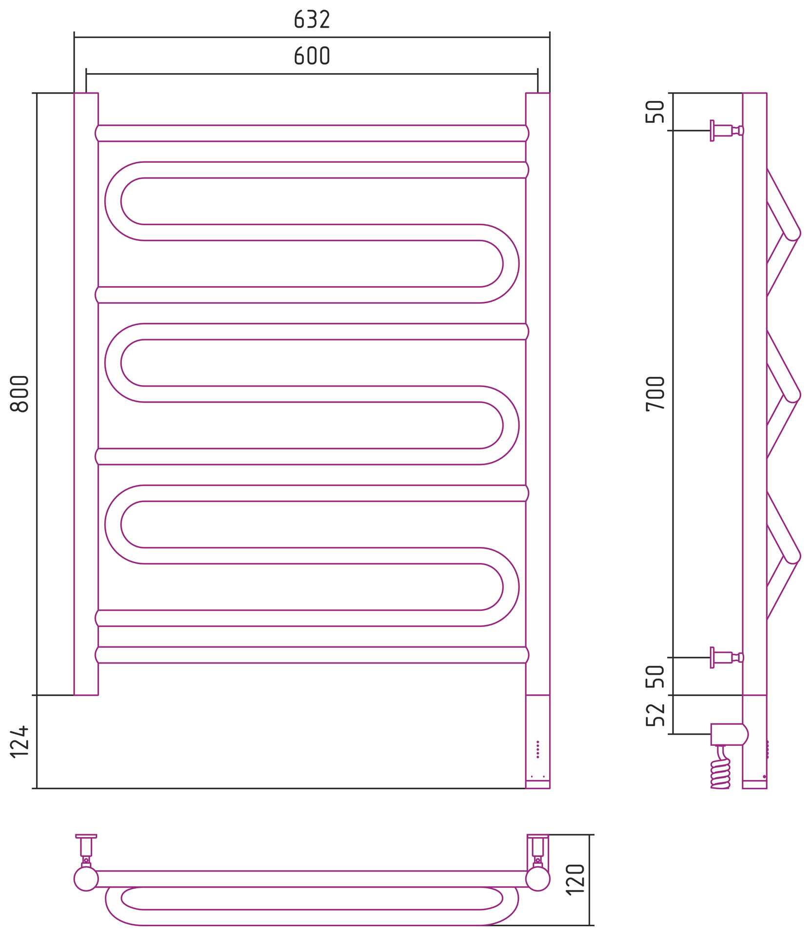 Полотенцесушитель электрический Сунержа Элегия 3.0 800x600 МЭМ правый, хром (00-5819-8060)