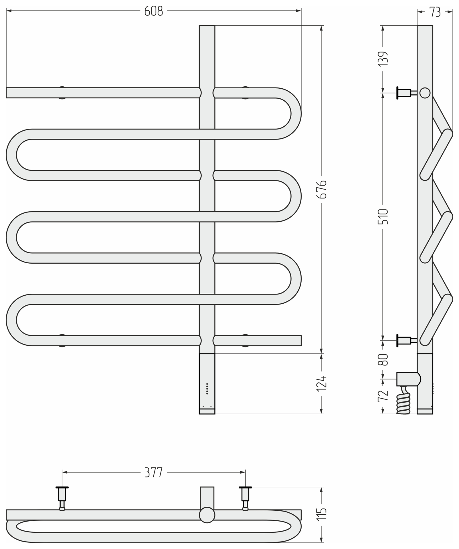 Полотенцесушитель электрический Сунержа Эпатаж 3.0 800x600 провод справа матовый чёрный (31-5851-8060)