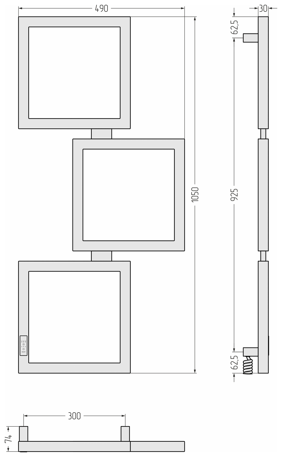 Полотенцесушитель электрический Сунержа Этюд 1050х500 провод слева / справа матовый белый (30-0846-1050)